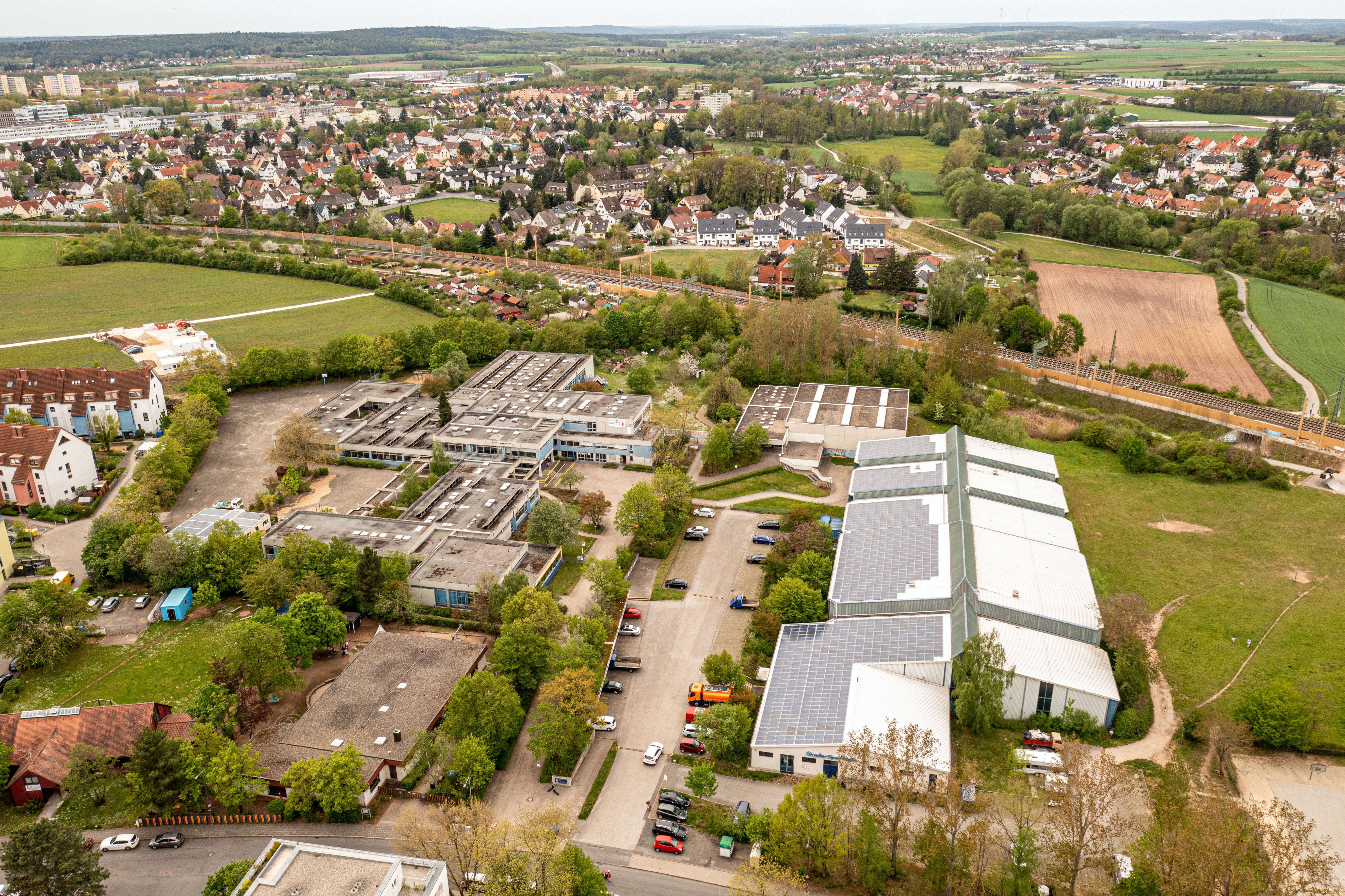 BeschreibungLinks im Bild die Dr.-Gustav-Schickedanz-Schule, rechts im Bild die LAC Quelle Turnhalle, Mai 2021