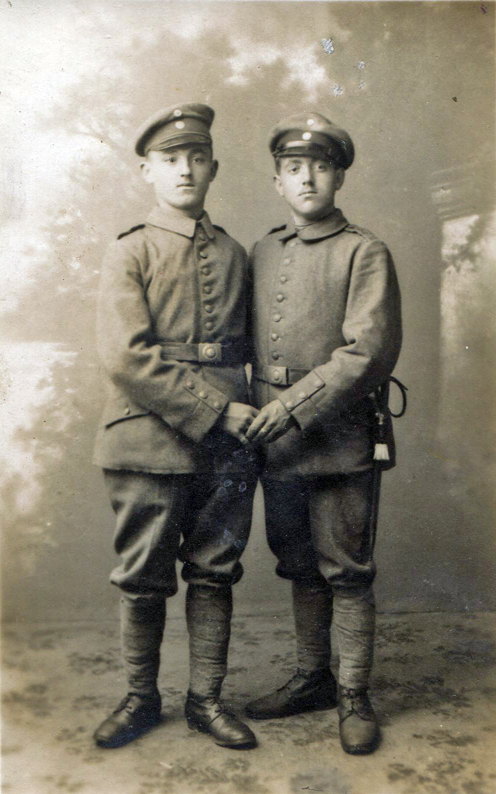 | Dateiinfo (Bild-Unterschrift und Info-Box, automatisch erstellt) | 2 Soldaten im Photoatelier, ca. 1915 Urheber: L. Klausner<br>Erstellungsdatum: 1915<br>Lizenz: cc-by-sa-3.0 | ||