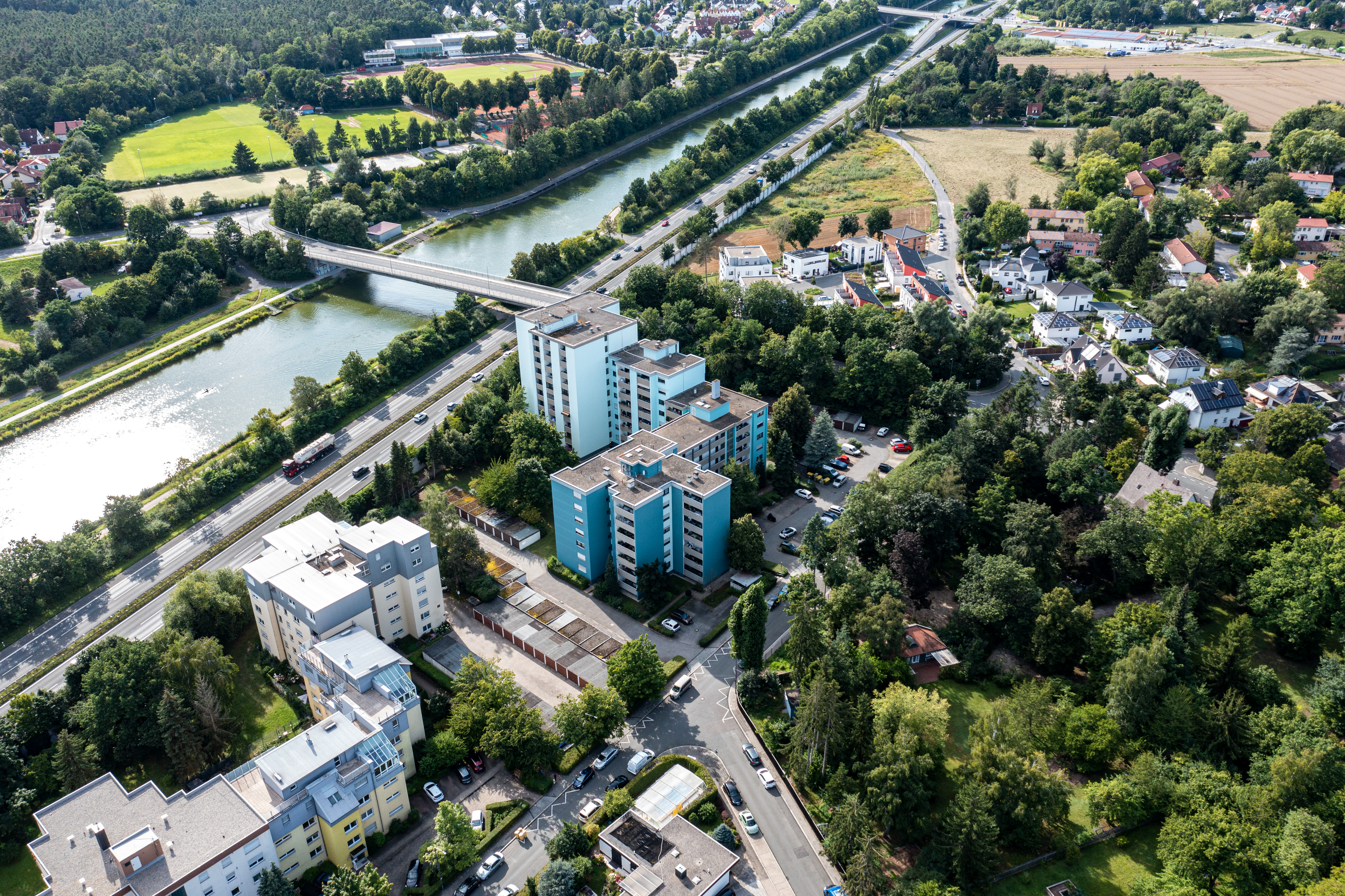 | Beschreibung | Links unten: Wohnanlage Händelstraße 10 bis 18 und oben im Bild Händelstraße 2 bis 8 (blau), August 2021 | ||
