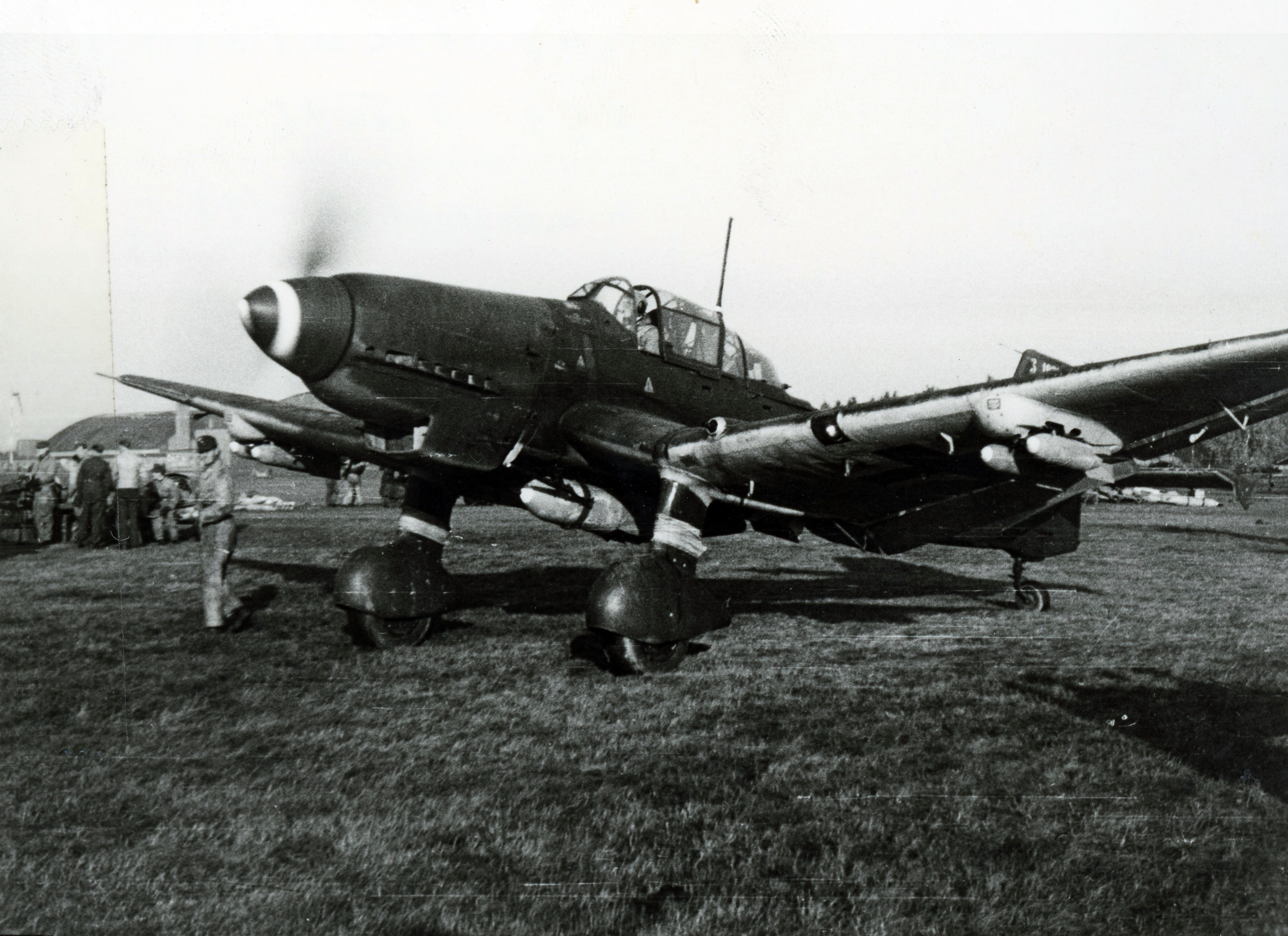 | Beschreibung | Pilot Hans Hautsch in seiner Junkers Ju 87, Okt. 1944 | ||