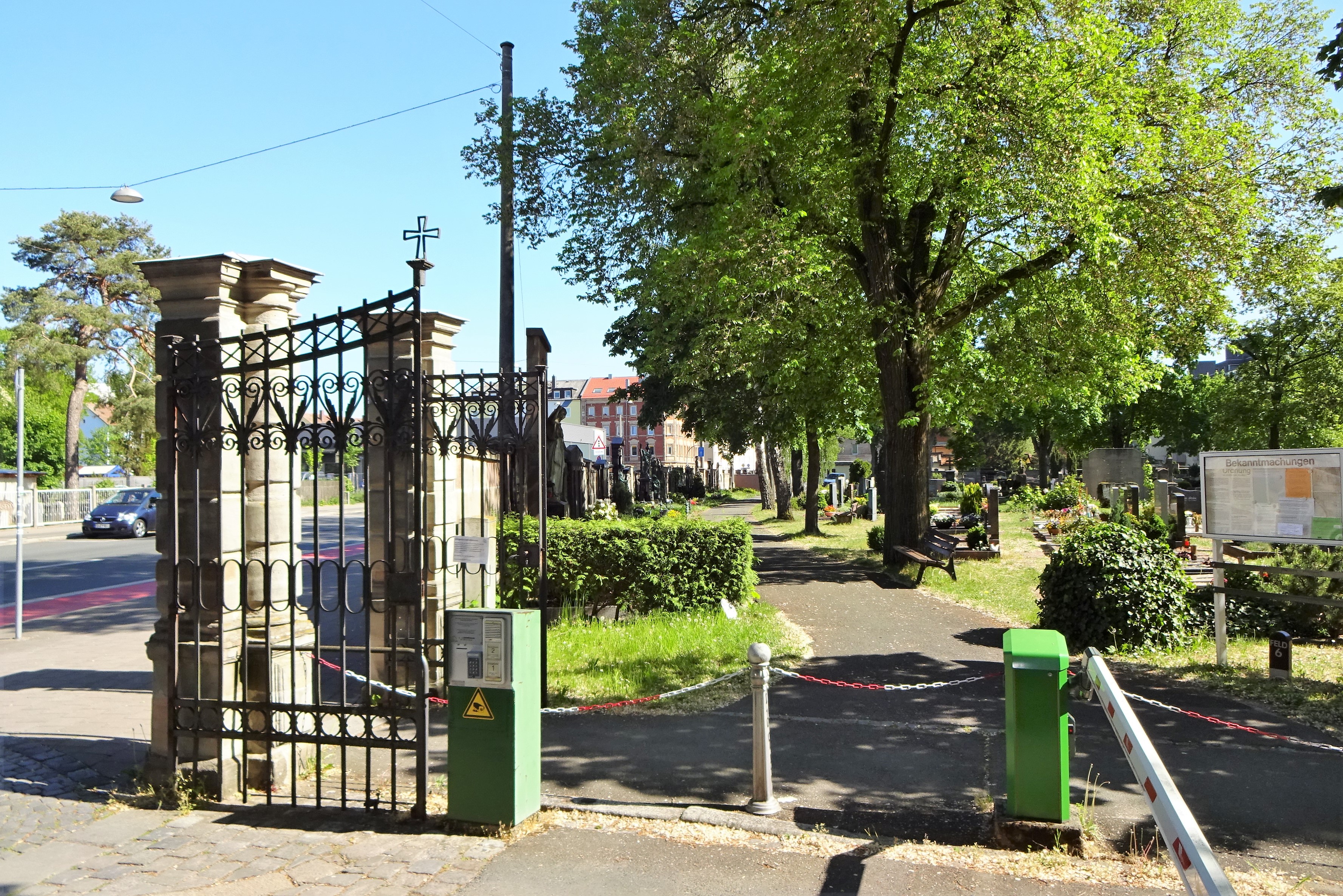 | Beschreibung | Haupteingang zum städtischen Friedhof an der Erlanger Straße, Mai 2020 | ||
