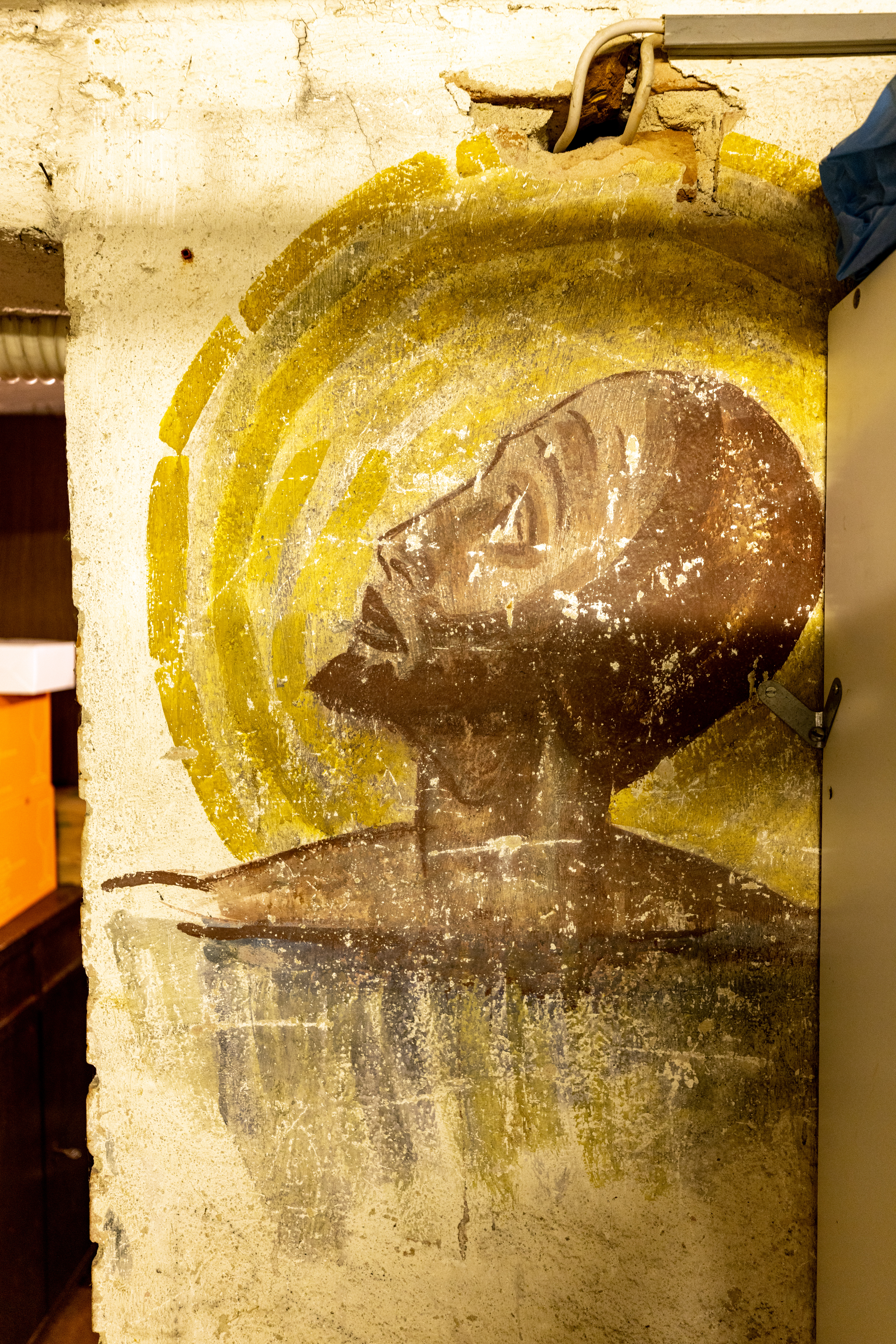 | Beschreibung | Zeichnungen zu Studienzwecken im Keller eines Wohnhauses für das später am Klinikum Fürth in der Kapelle entstandene Wandgemälde in der Kapelle - hier mit dem Gesicht Jesus Christus, Mai 2022 | ||