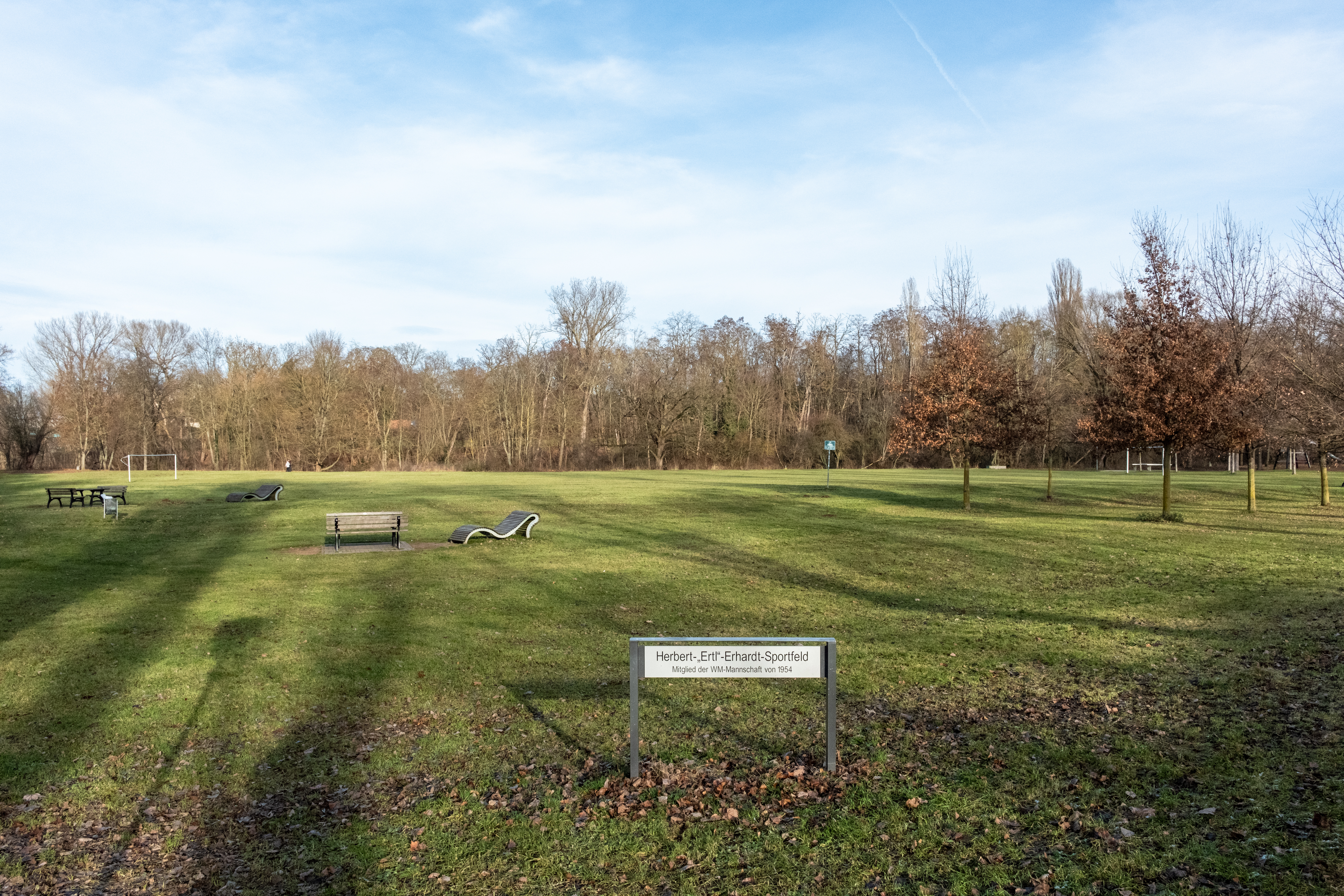 | Beschreibung | Herbert "Ertl" Erhard(t) Sportfeld am Schießanger - hier mit Tippfehler auf dem Schild, Jan 2025 | ||