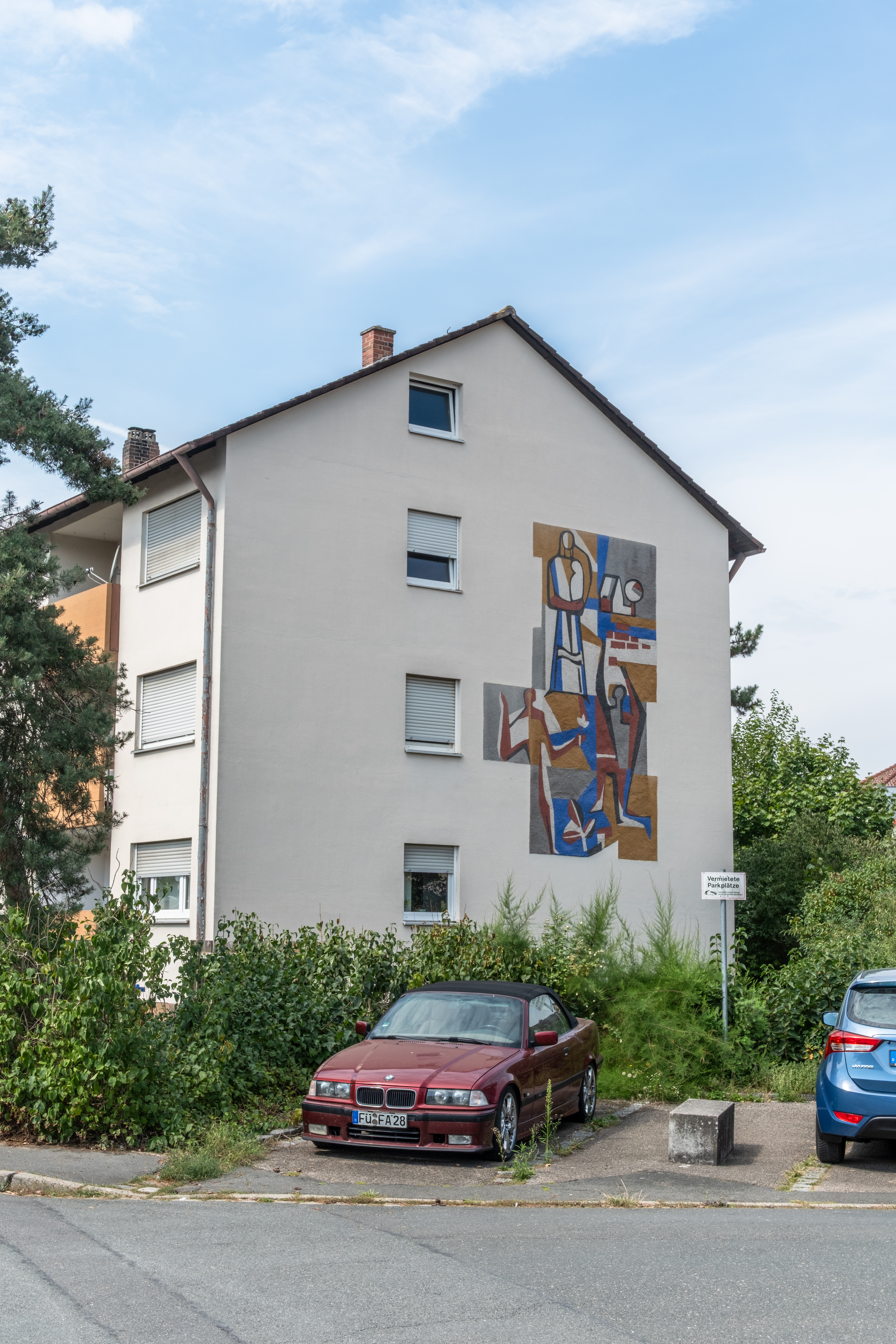 BeschreibungDas Gebäude Herboldshofer Straße 15 in Stadeln, mit dem Sgraffiti von Gudrun Kunstmann, Aug. 2025