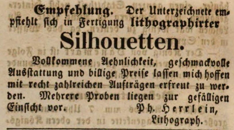 BeschreibungZeitungsannonce des Lithographen Philipp Herrlein, Januar 1848