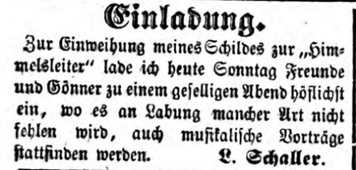 Anzeige Einweihung des Schildes "zur Himmelsleiter", Januar 1858 Lizenz: NoC-NC 1.0