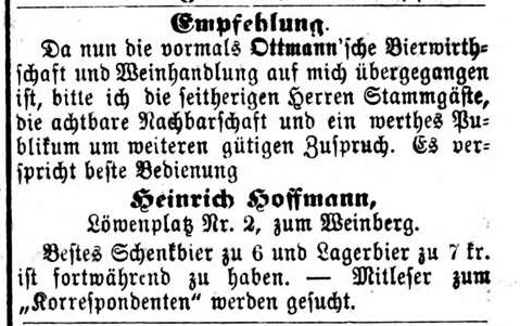 | Datei:Hofmann Anzeige Zum Weinberg, Ftgbl. 31.3.1867.jpg | |||