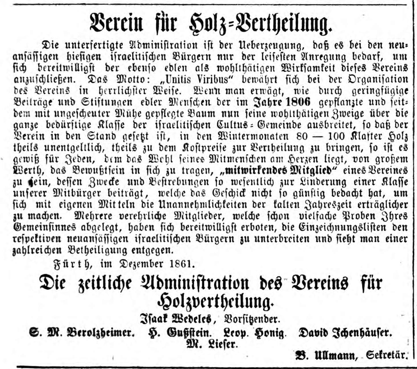 | Beschreibung | Holzverteilungsverein, Fürther Tagblatt 28.12.1861 | ||
