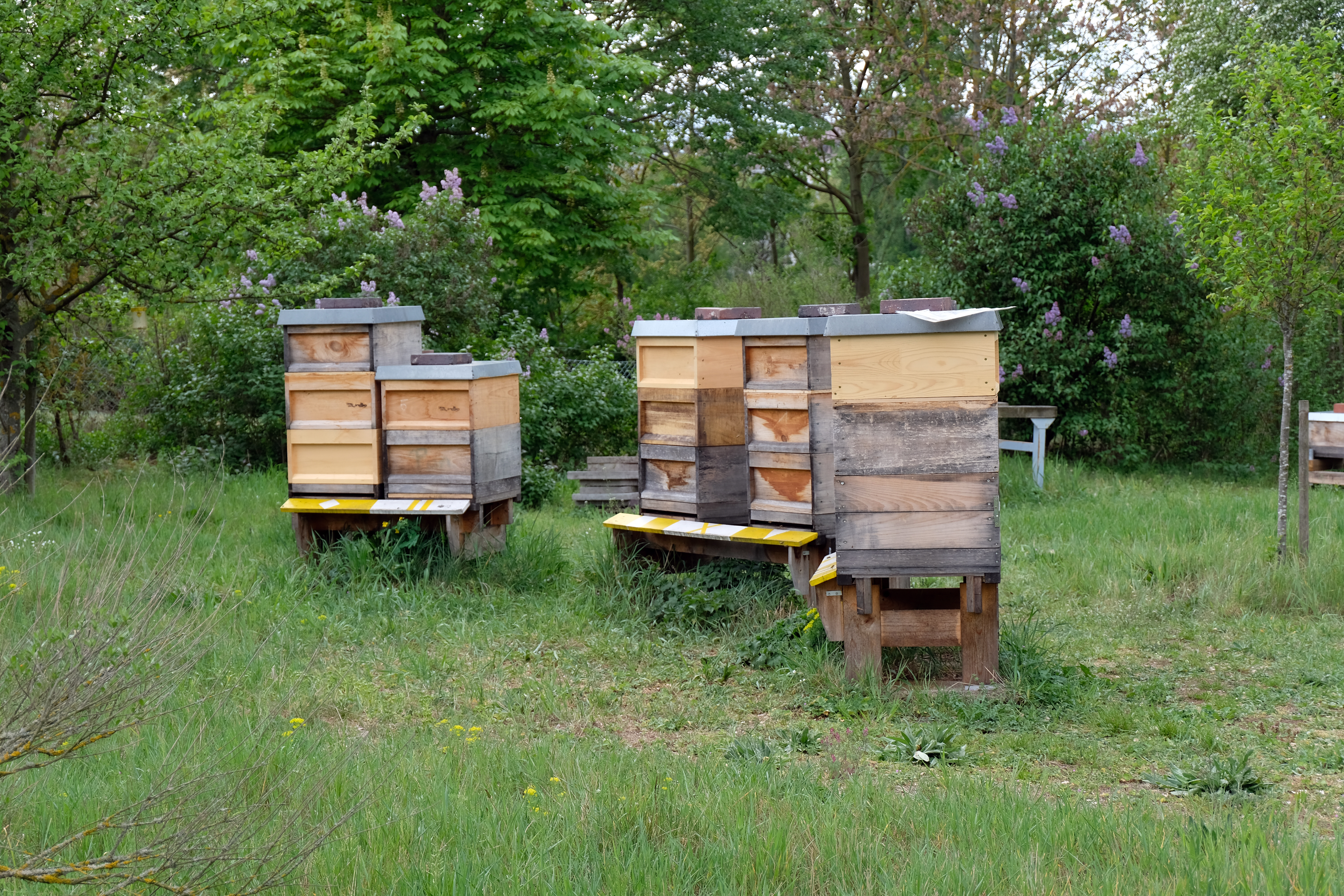 | Beschreibung | Holzbeuten des Imkervereins Fürth und Umgebung in der kleinen Mainau, April 2019 | ||