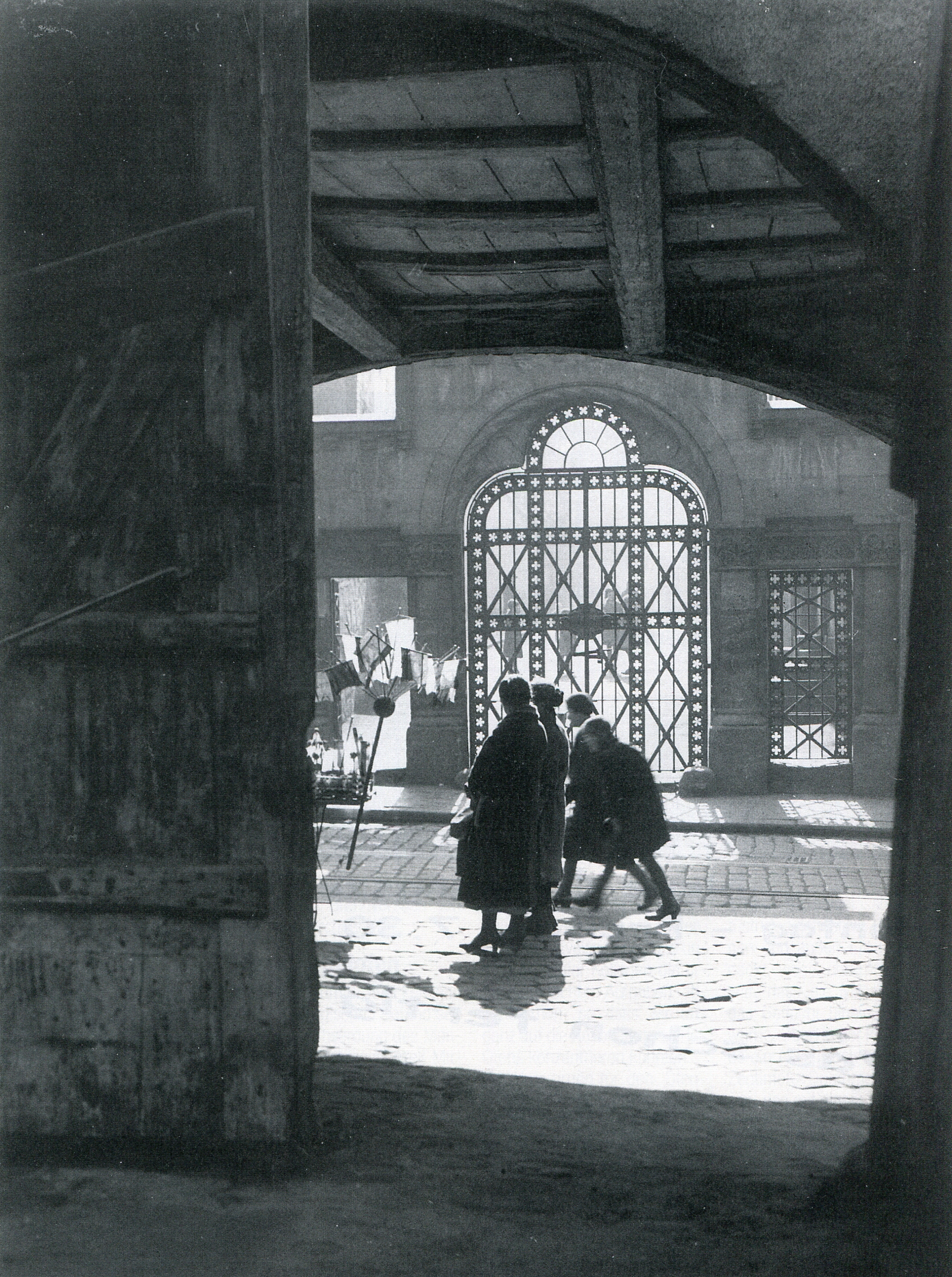 Eingang zum jüd. Schulhof und Synagoge vor der Zerstörung im April 1932 von der Toreinfahrt Königstraße 45 aus. Heute steht hier das Anwesen Königstraße 54.