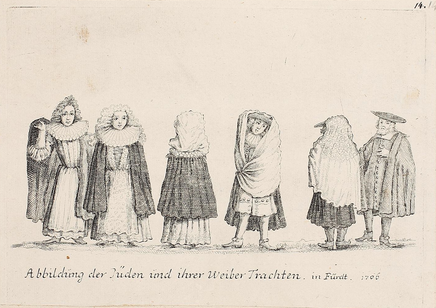 | Beschreibung | Abbildung der Jüden und ihrer Weiber Trachten in Fürdt, 1706 | ||