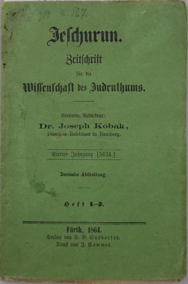 | Beschreibung | Jeschurun Zeitschrift, Gusdorfer und Sommer, 1864 | ||