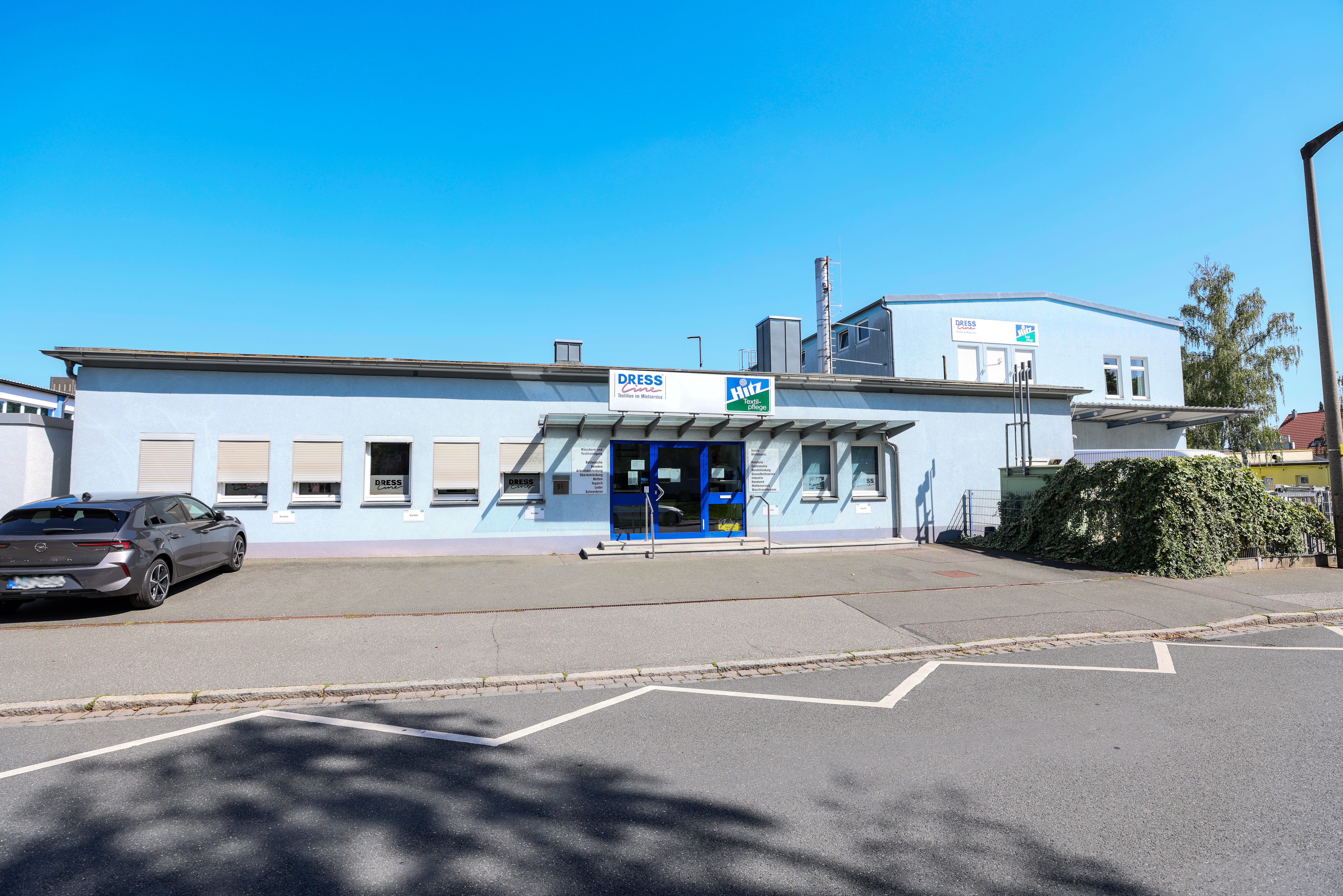| Beschreibung | Die Textilwäscherei Johann Hitz in der Siemensstraße 51, Aug. 2023 | ||