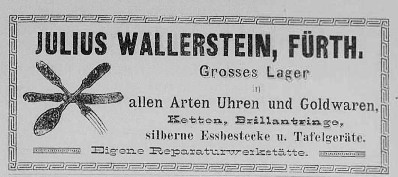 | Beschreibung | Wallersteinanzeige in Schmittner's Adreß und Geschäfts-Handbuch von Fürth 1893 | ||