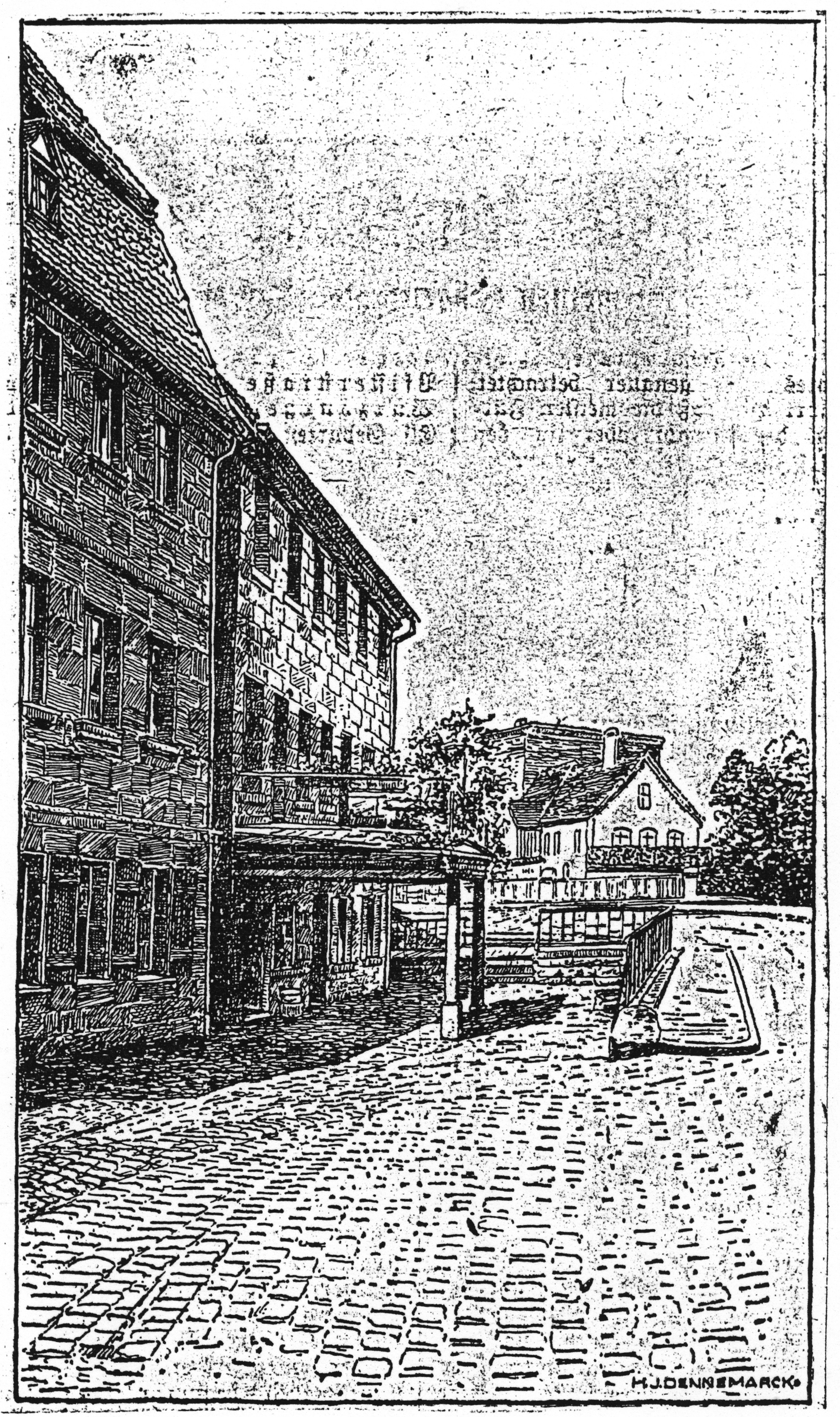 BeschreibungDie Schmiede in der Königstraße 2 – Zeichnung: H. J. Dennemarck, 1939