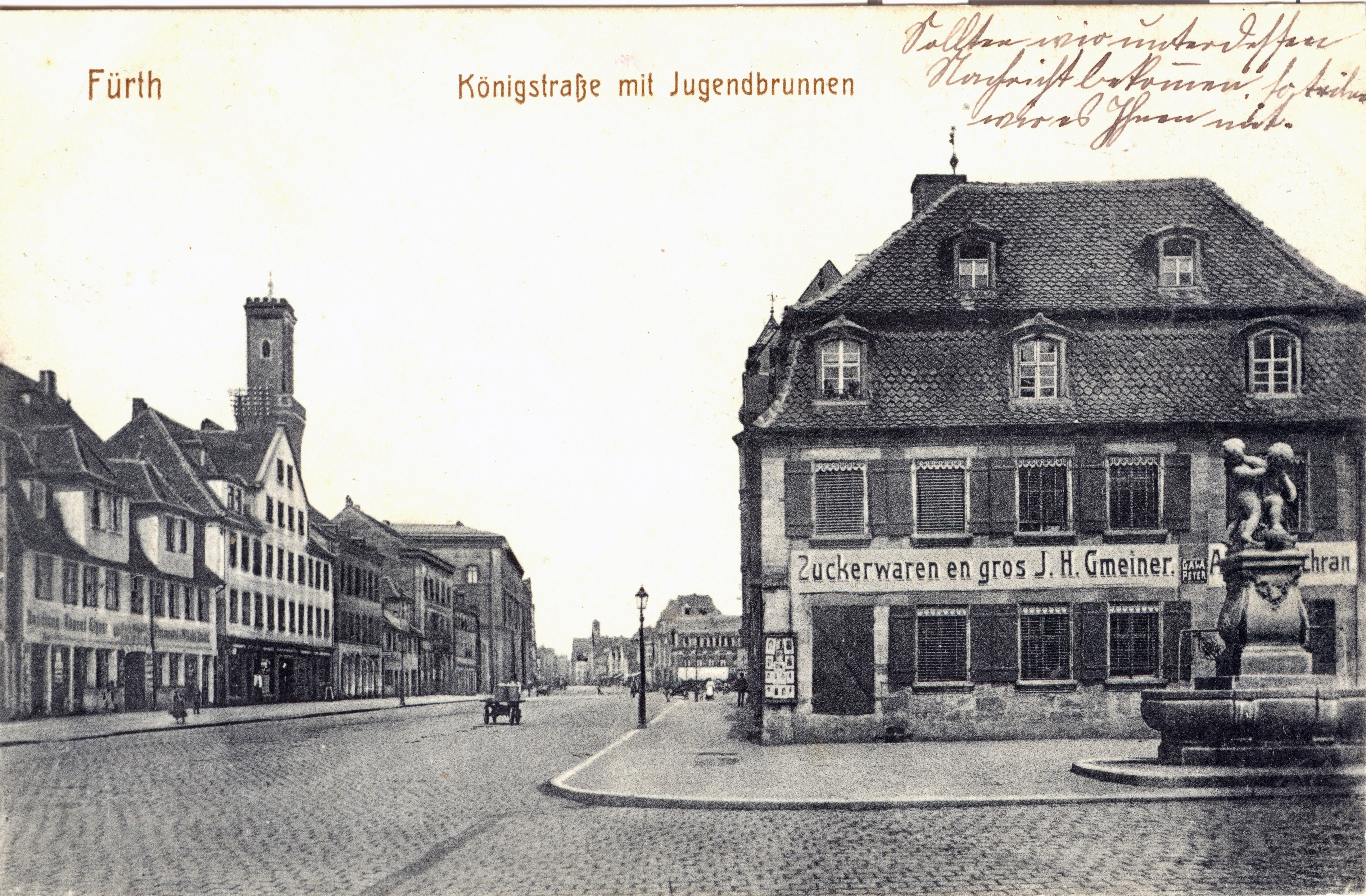| Beschreibung | Königstraße mit Jugendbrunnen am früheren Helmplatz (heute Dr.-Henry-Kissinger-Platz) | ||