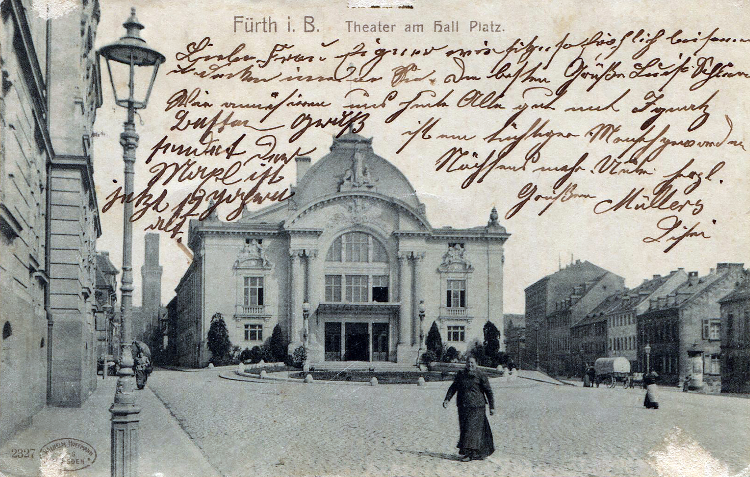 | Beschreibung | Stadttheater Fürth mit Blick in die Königstraße, 1908 | ||