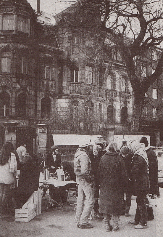 | Beschreibung | "Kältefrühstück" am 24. Januar 1981, dem Samstag nach dem Auszug der "Instandbesetzer" aus der Villa Königswarterstraße 20. | ||