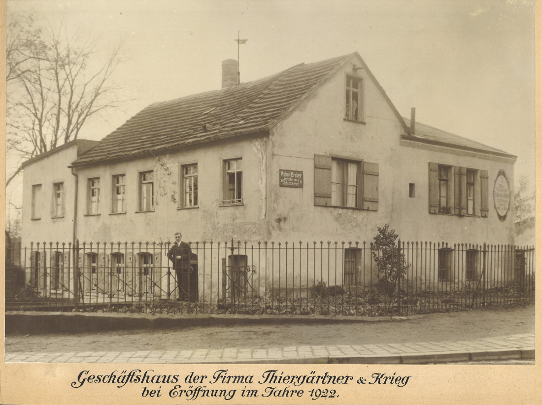 | Beschreibung | Heinrich Thiergärtner vor seiner Firma (Thiergärtner & Krieg) im Eröffnungsjahr 1922. Gebäude existiert heute noch | ||