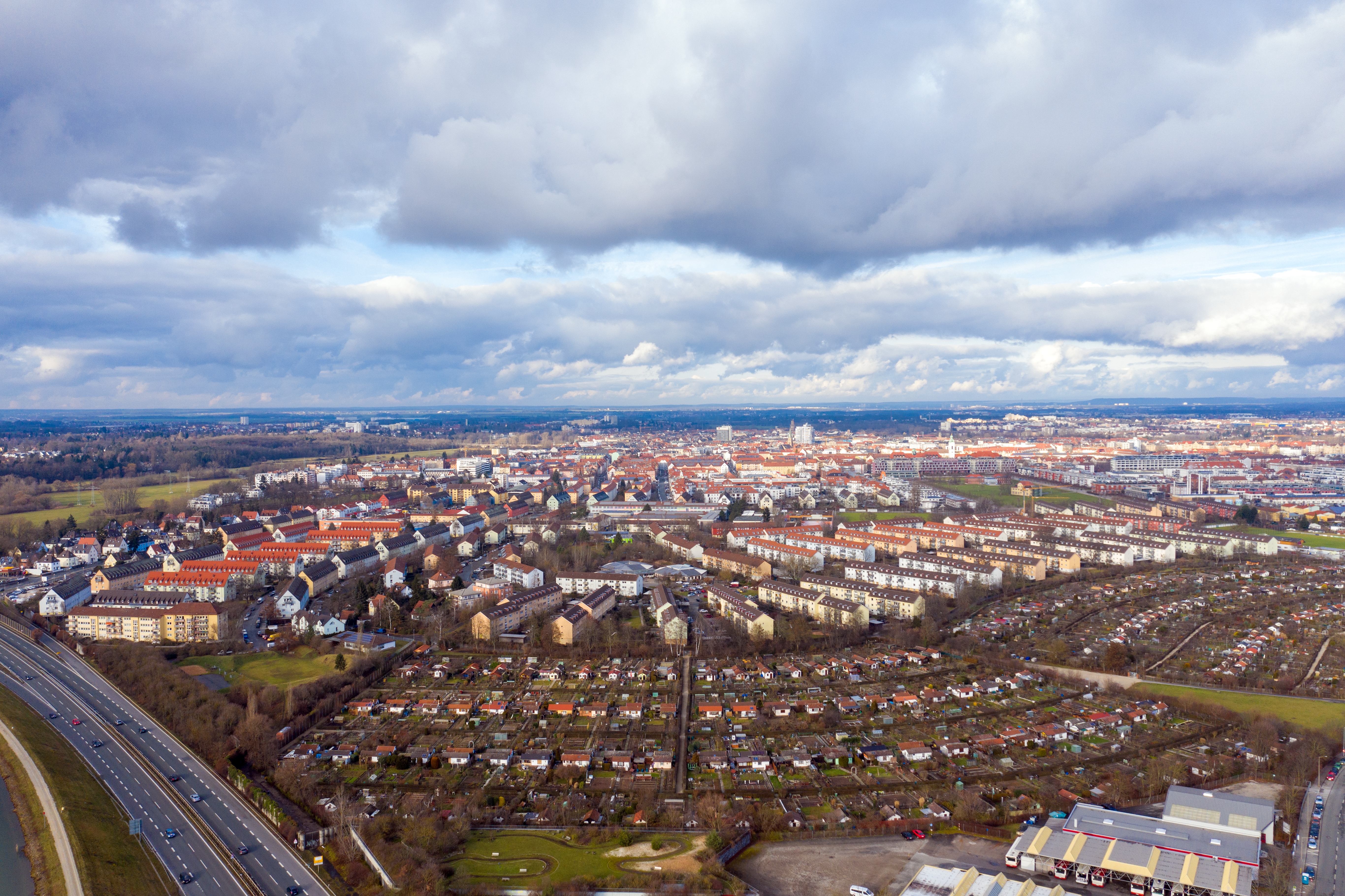 | Beschreibung | Blick über die Kalbsiedlung, im Hintergrund der Südstadtpark, Dez. 2019 | ||