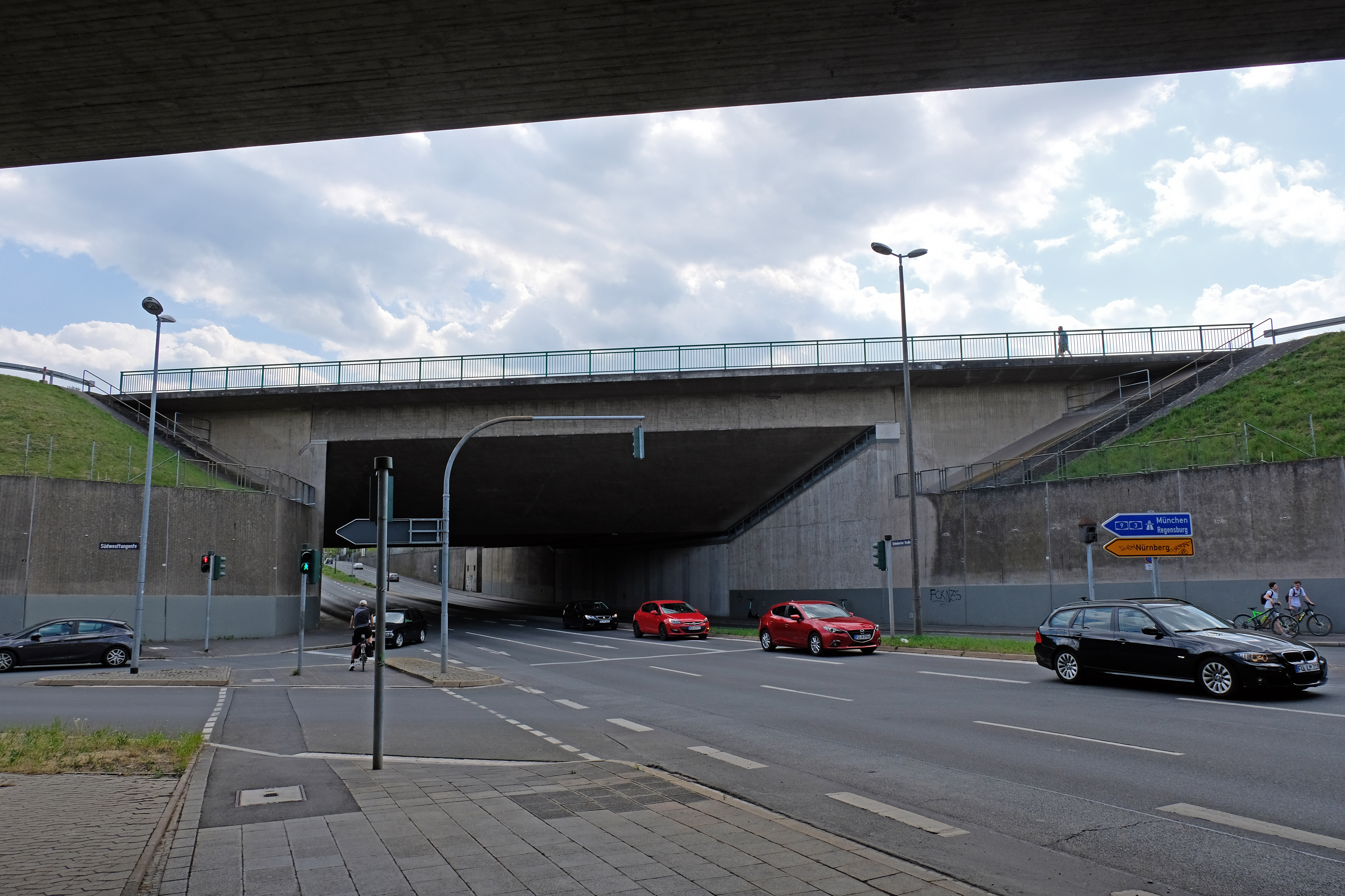 | Beschreibung | Die Kanalbrücke Schwabacher Straße in der Südstadt - mit im Bild die fest installierte Blitzanlage zur Verkehrsüberwachung (siehe Autobahn-Schild), April 2020 | ||