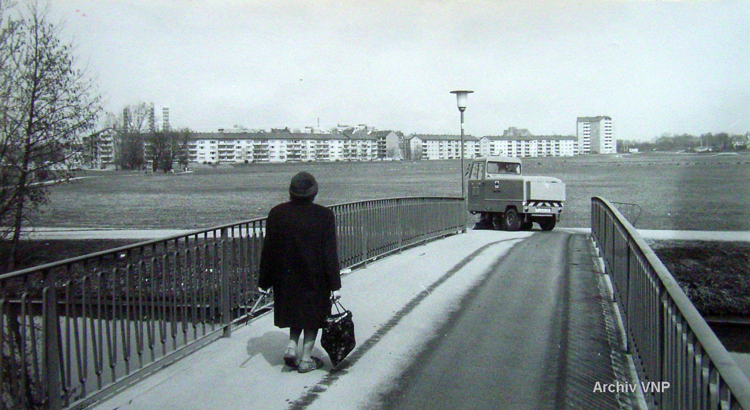 | Dateiinfo (Bild-Unterschrift und Info-Box, automatisch erstellt) | Karlsteg in Blickrichtung Espan (1971) Lizenz: copyright | ||