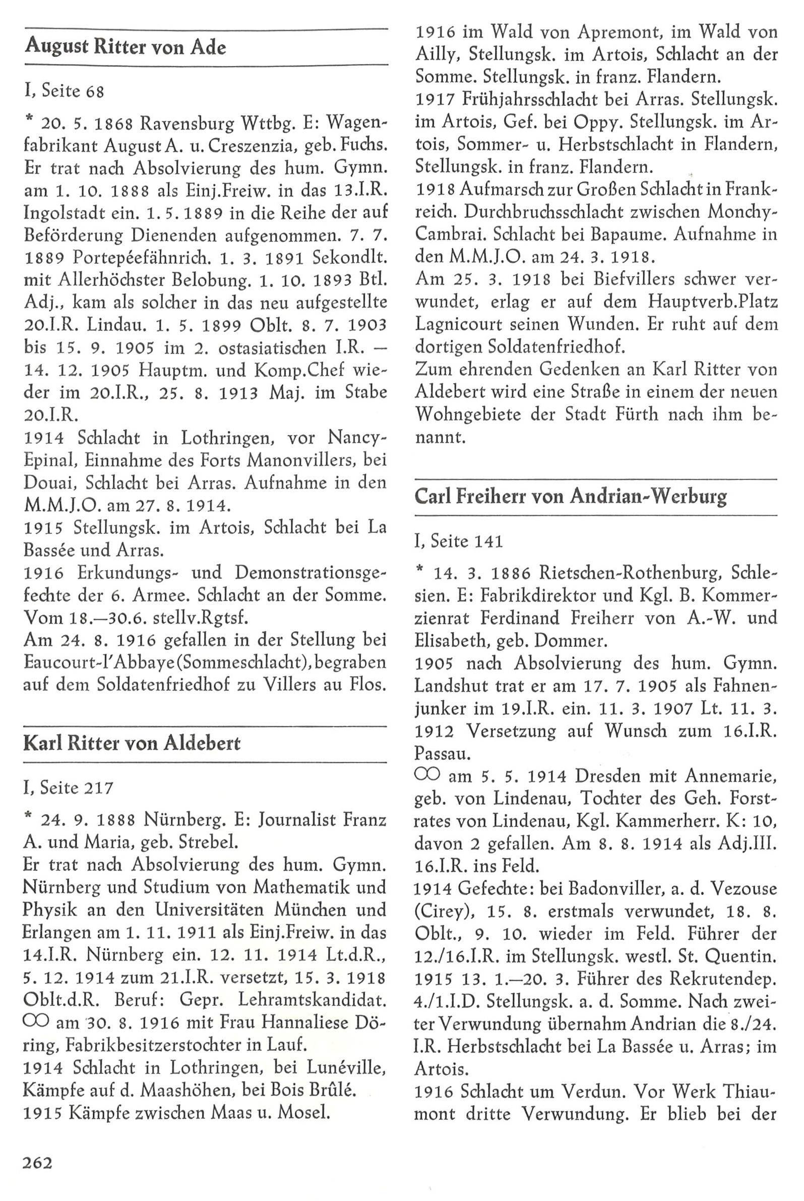 | Beschreibung | Eintrag zu Karl Ritter von Aldebert im 1966 erschienen Buch über die Ordensverleihungen zwischen 1914 und 1918 | ||