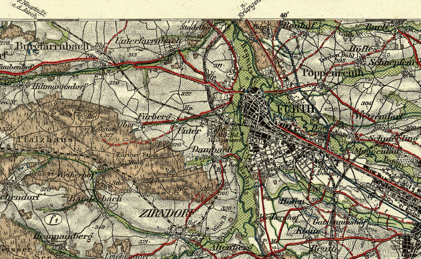 | Quellangaben | Karte des Deutschen Reiches 1:100000, Nürnberg 563 - online-Digitalisat über BayernAtlas | ||
