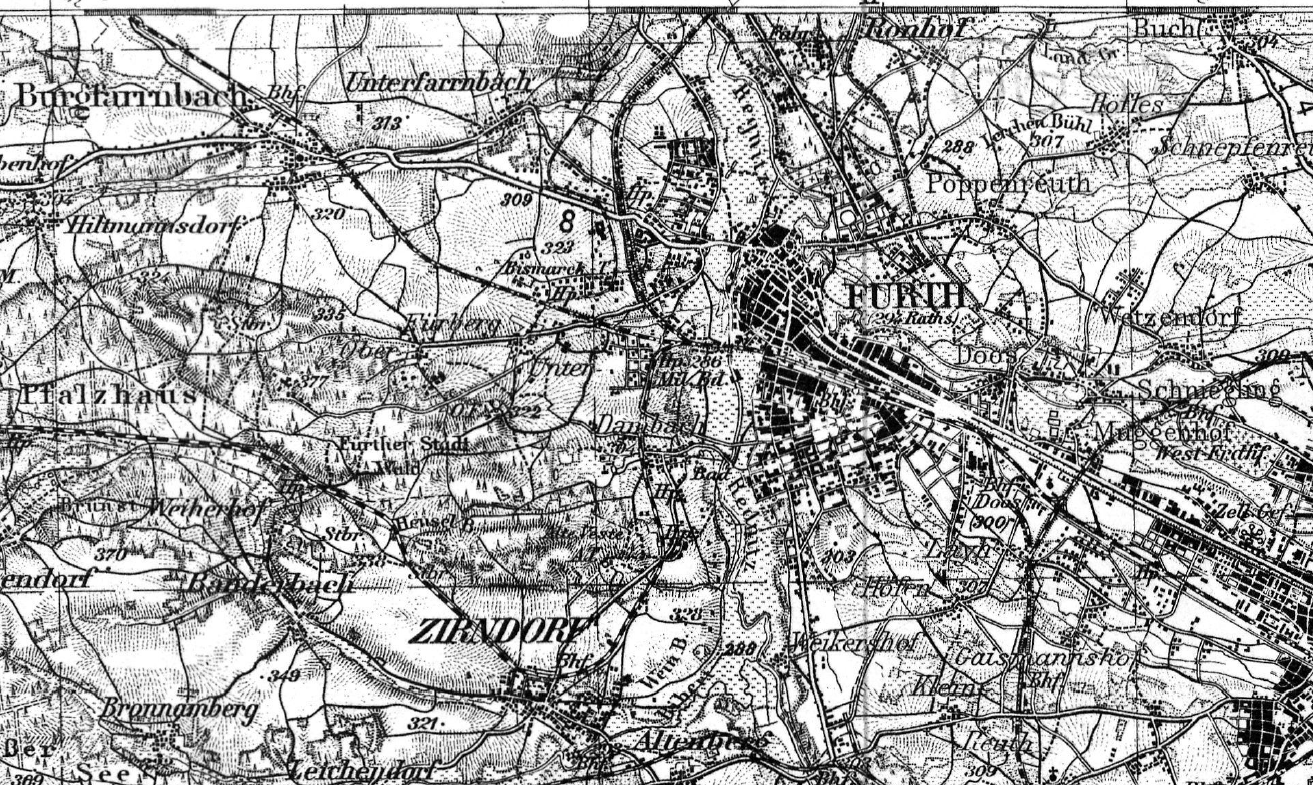 | Quellangaben | Karte des Deutschen Reiches 1:100000, Nürnberg 563 - online-Digitalisat über BayernAtlas | ||