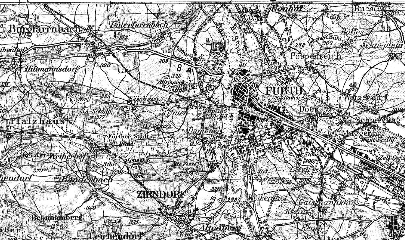 | Quellangaben | Karte des Deutschen Reiches 1:100000, Nürnberg 563 - online-Digitalisat über BayernAtlas | ||