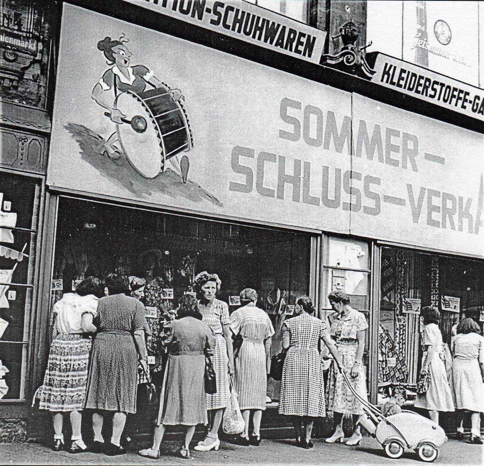 | Beschreibung | Kaufhaus Tietz am Kohlenmarkt mit Werbung an der Außenfassade, ca. 1950 | ||