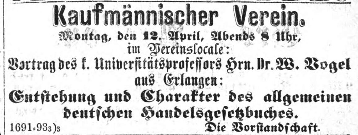 | Beschreibung | Anzeige Kaufmännischer Verein, Fürther Abendzeitung vom 11. April 1875 | ||