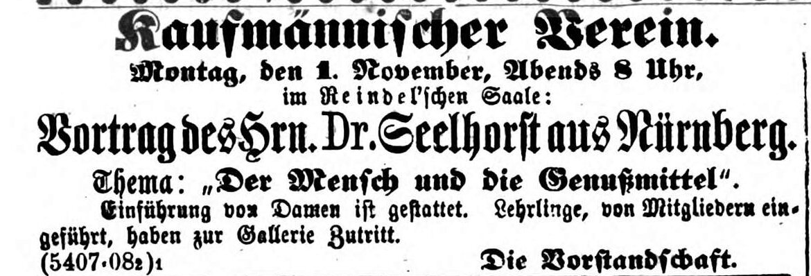 | Beschreibung | Anzeige Kaufmännischer Verein, Fürther Abendzeitung vom 27. Oktober 1875 | ||
