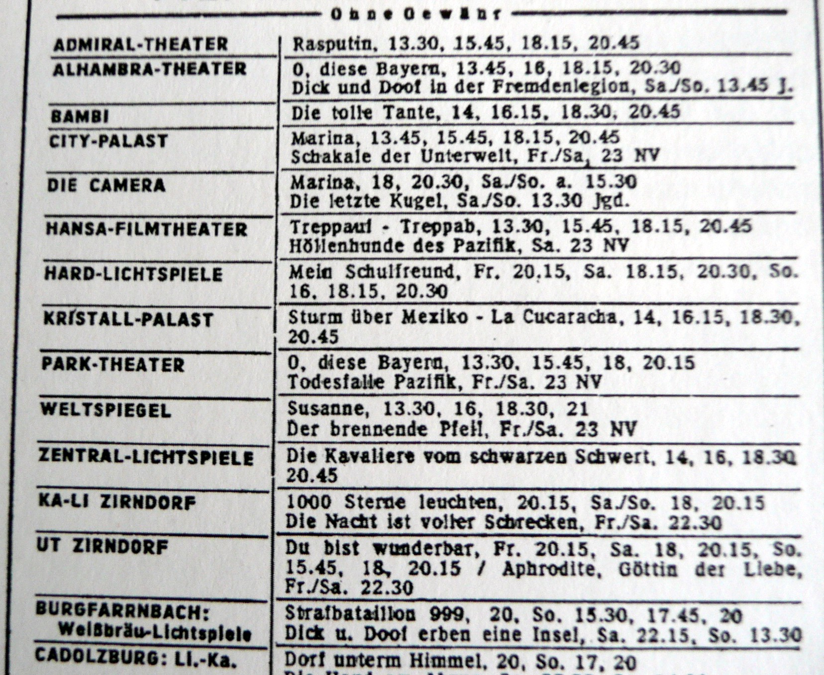 Kino Programm von Fürth mit Landkreis aus der FN vom 30.09.1960