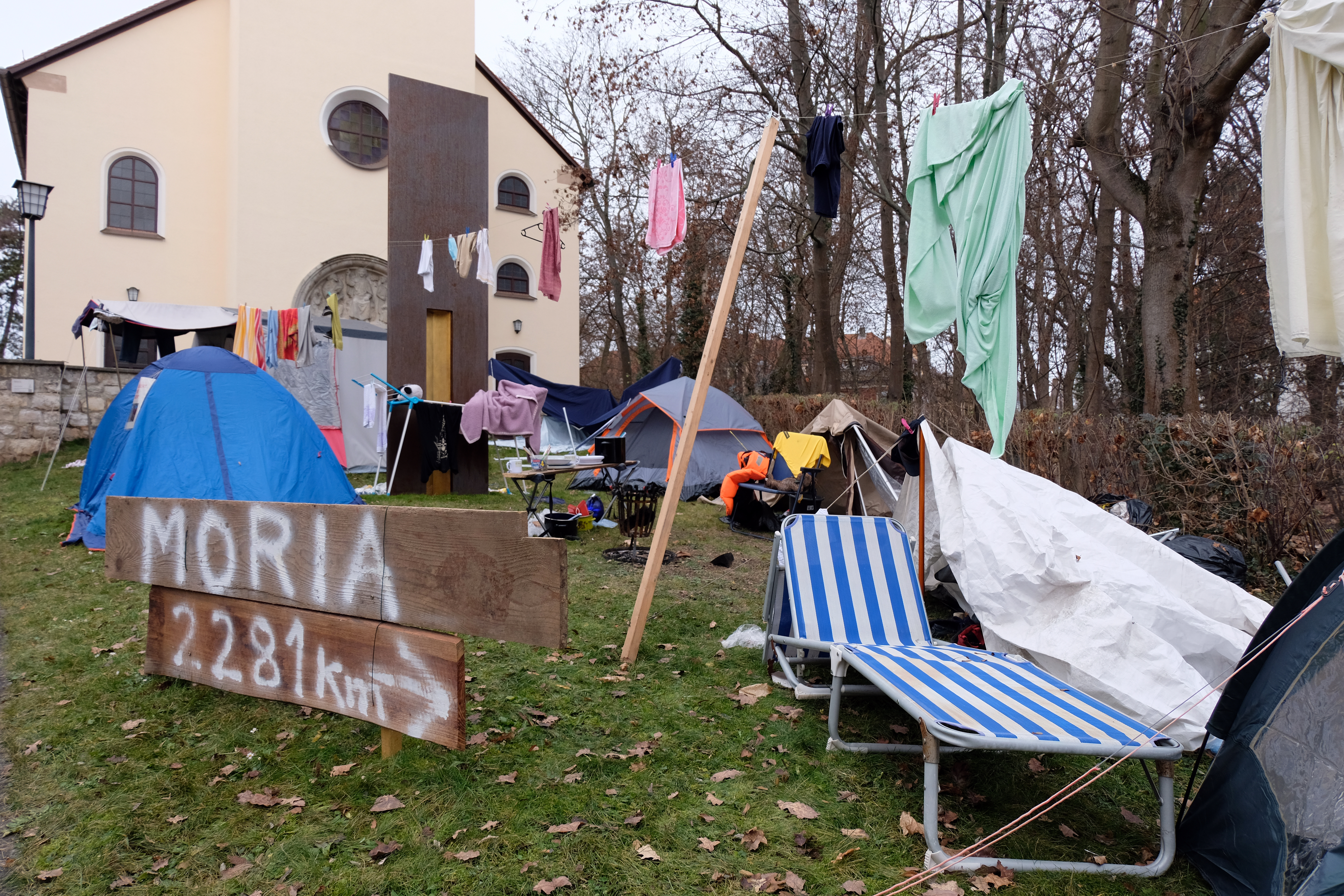 | Beschreibung | Die Kirche St. Martin auf der Wilhelmshöhe mit einer Aktion gegen das Flüchtlingscamp in Moria, Dez. 2020 | ||