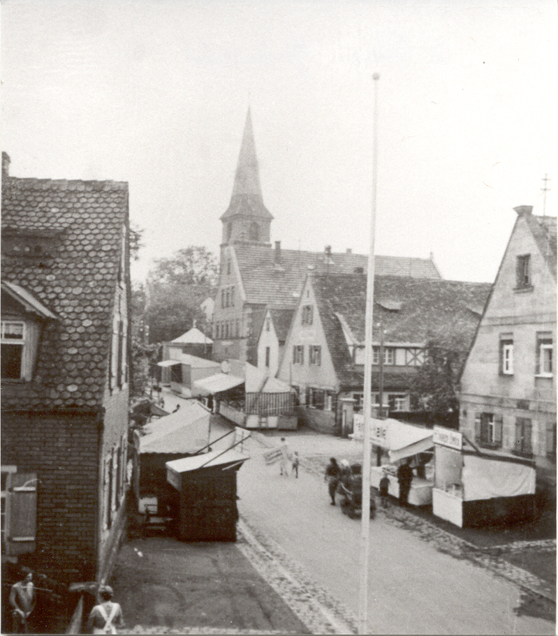 | Beschreibung | Kirchweih in Poppenreuth in den 50er Jahren; links: Poppenreuther Straße 159, daneben Bildmitte: Poppenreuther Straße 157 | ||