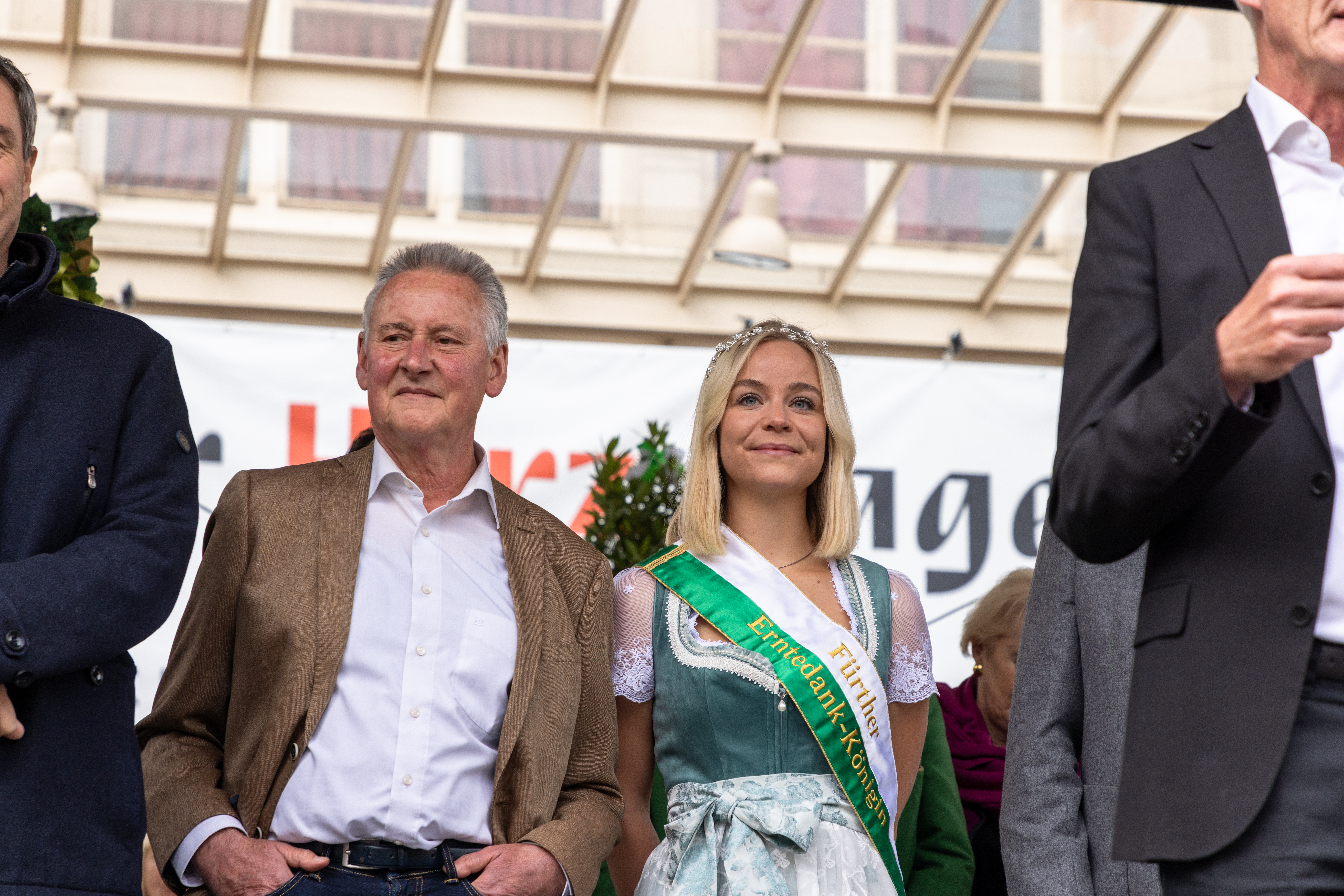 OB Dr. Thomas Jung mit Erntedank-Königin Carla Beuthner bei der Eröffnung der Kirchweih, Sept. 2024 Urheber: Kamran Salimi<br>Erstellungsdatum: 28. September 2024<br>Lizenz: cc-by-sa-4.0