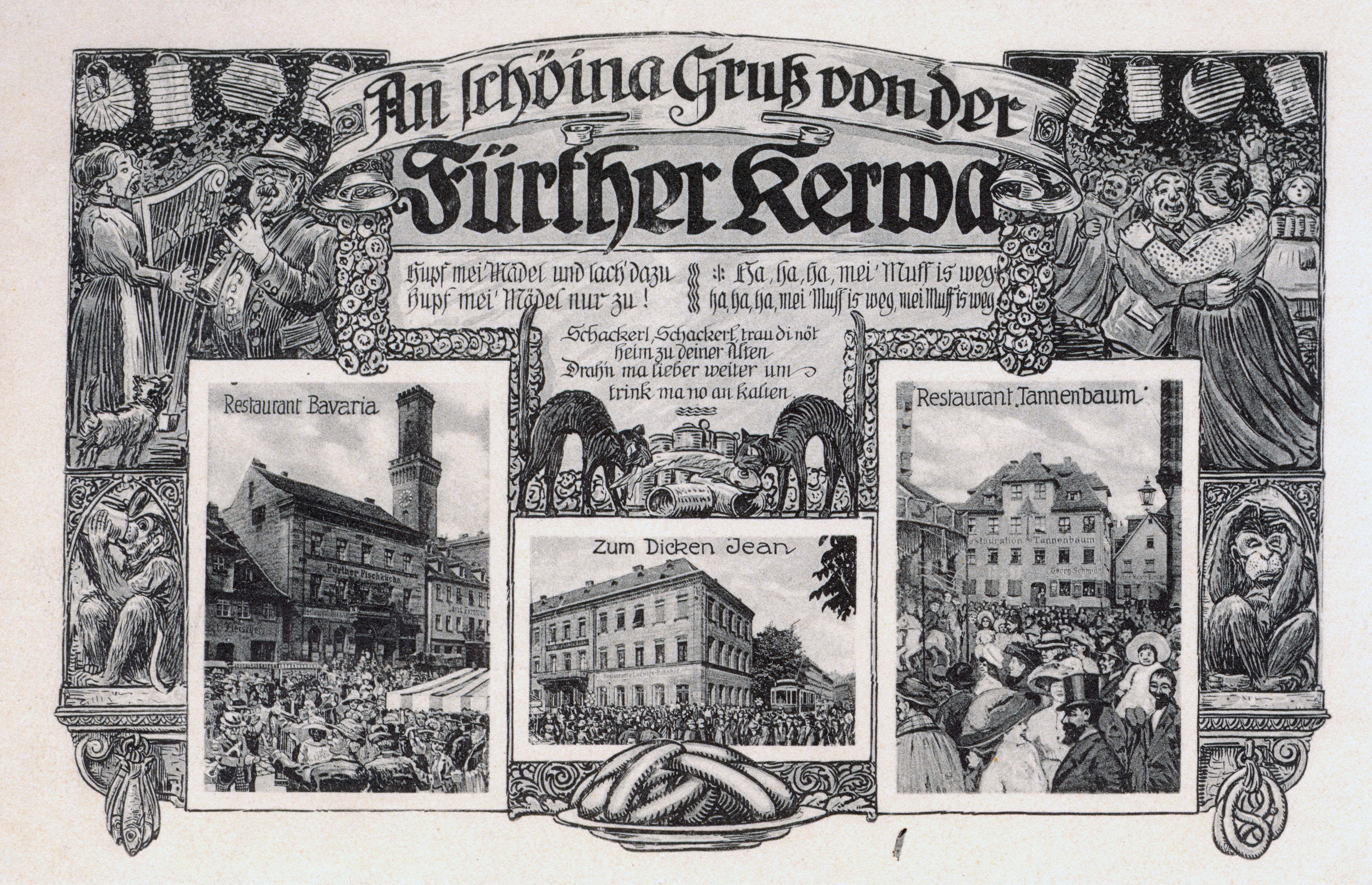 | Dateiinfo (Bild-Unterschrift und Info-Box, automatisch erstellt) | Kirchweihkarte mit Gaststätten Lizenz: cc-by-sa-3.0 | ||