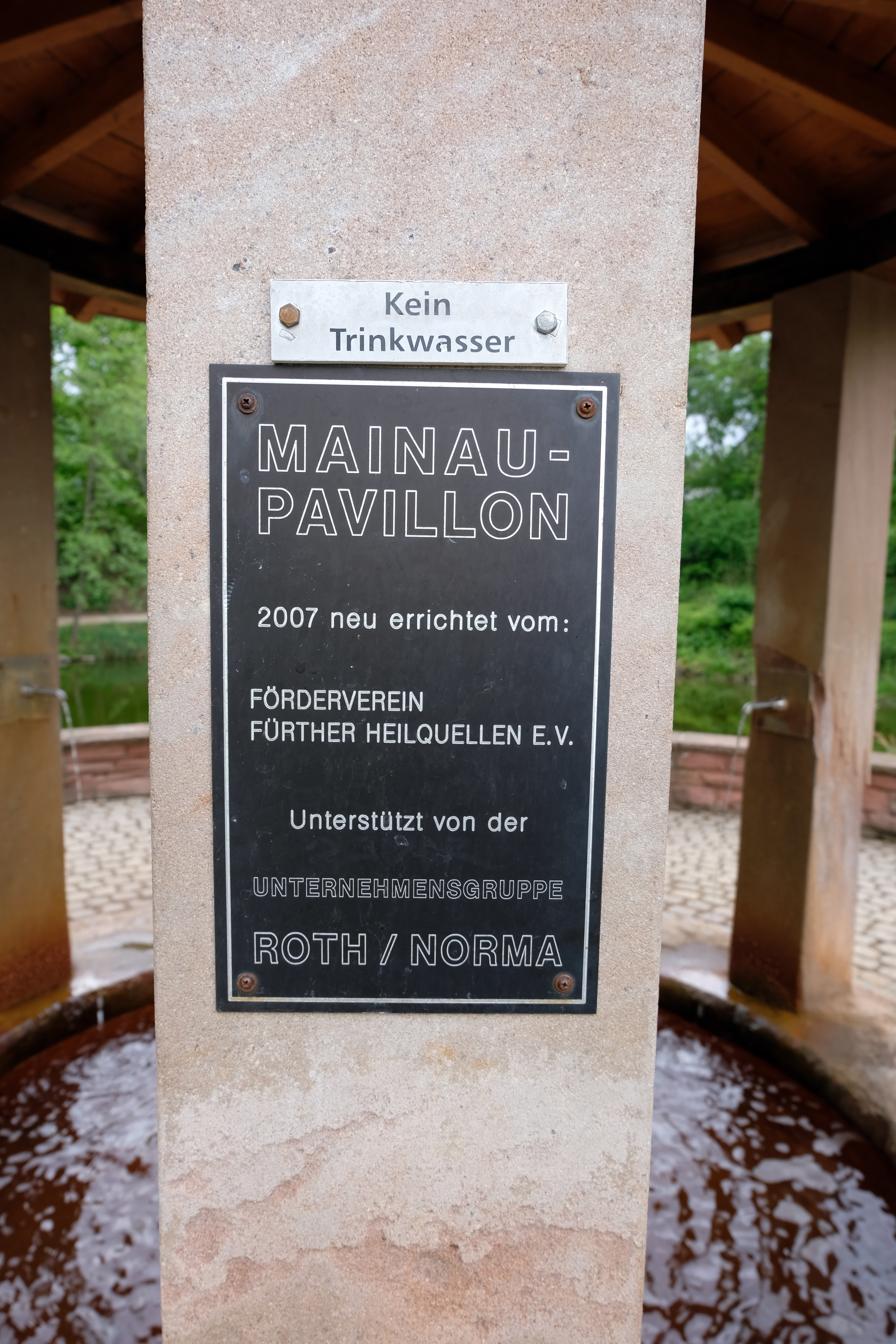 | Beschreibung | Hinweisschild zur Sanierung des Quelltempel an der Kleinen Mainau im Jahr 2007, April 2019 | ||