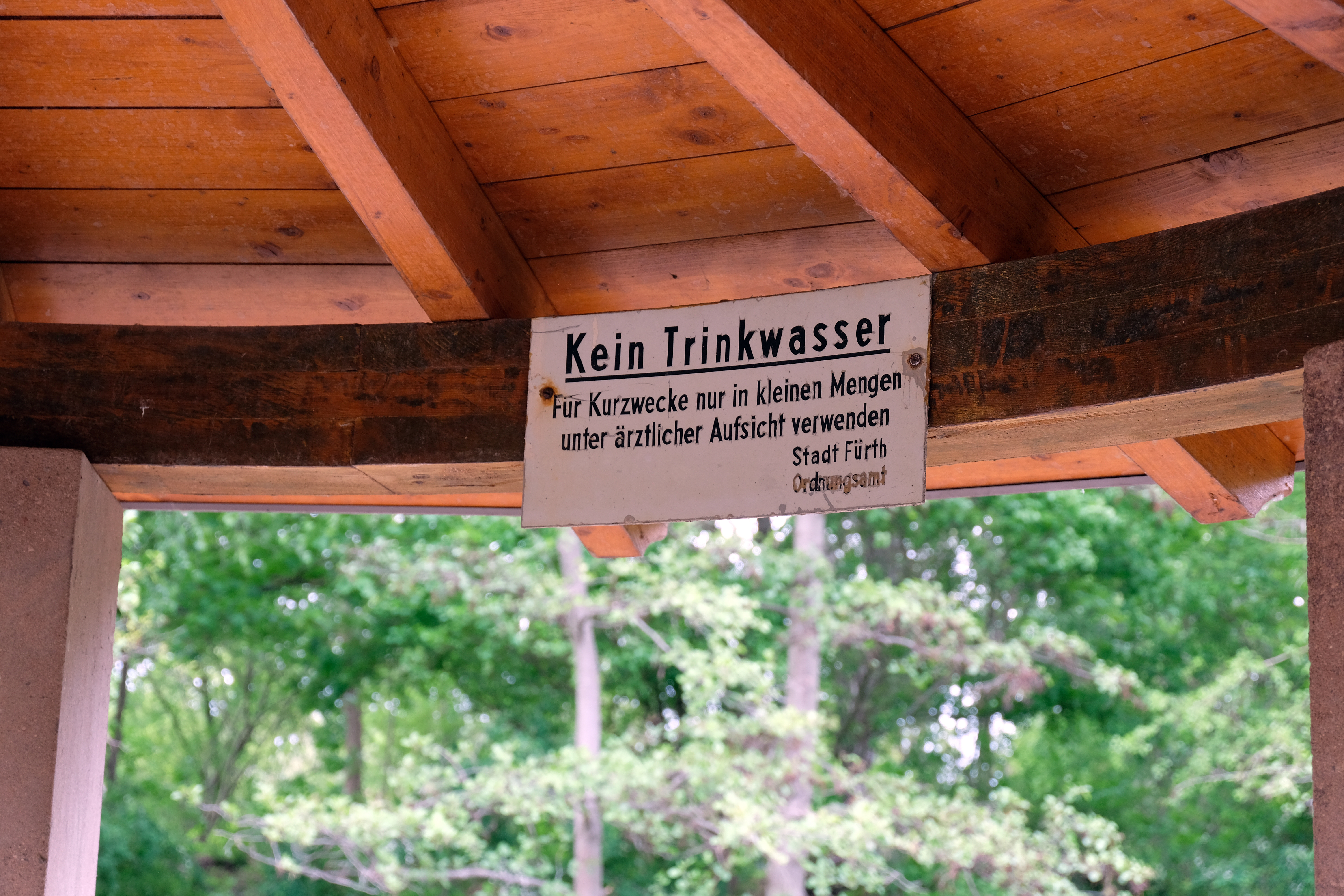 Hinweisschild im Quelltempel an der Kleinen Mainau - Kein Trinkwasser, April 2019 Urheber: Kamran Salimi<br>Erstellungsdatum: 27. April 2019<br>Lizenz: cc-by-sa-3.0