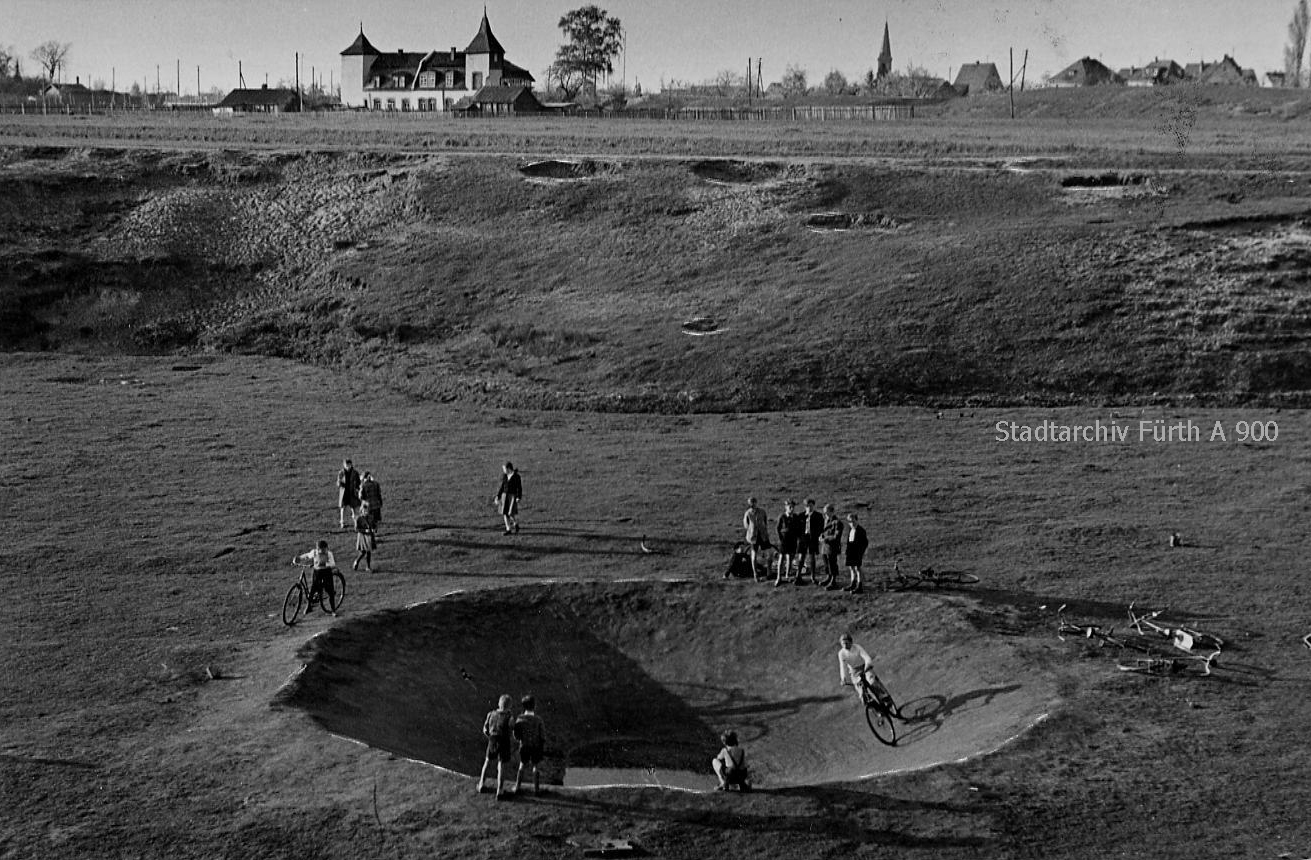 | Dateiinfo (Bild-Unterschrift und Info-Box, automatisch erstellt) | Gelände mit Bombentrichter an der heutigen Kleinen Mainau nach dem 2. Weltkrieg, Mai 1951 – im ... Gelände mit Bombentrichter an der heutigen Kleinen Mainau nach dem 2. Weltkrieg, Mai 1951 – im Hintergrund Gebäude an der Dammstraße, dahinter die Poppenreuther Kirche St. Peter und Paul<br>Urheber: Ferdinand Vitzethum<br><br>Lizenz: Bildlizenz-Stadtarchiv | ||
