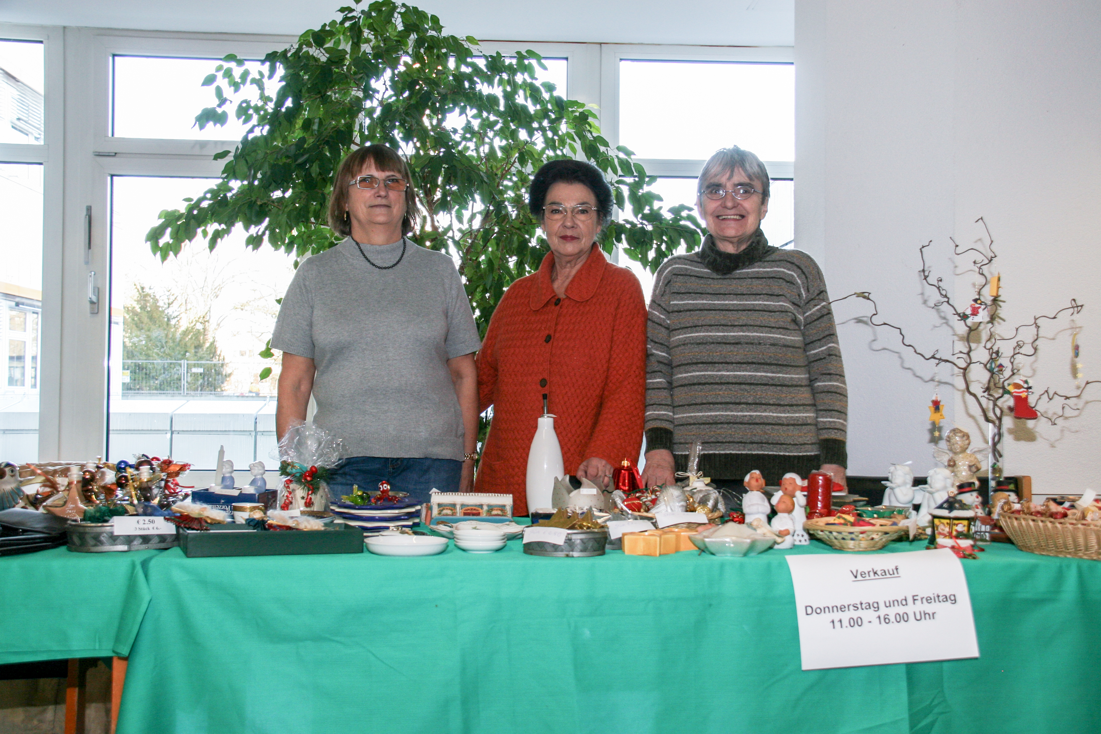 | Beschreibung | Maria Schäfer; ehem. CSU-Stadträtin Heidi Tischendorf und Personalrätin Elke Efstratiou verkaufen zu Gunsten des Fördervereins Onkologie vor der Cafeteria des Klinikum Fürth, Dez 2009 | ||