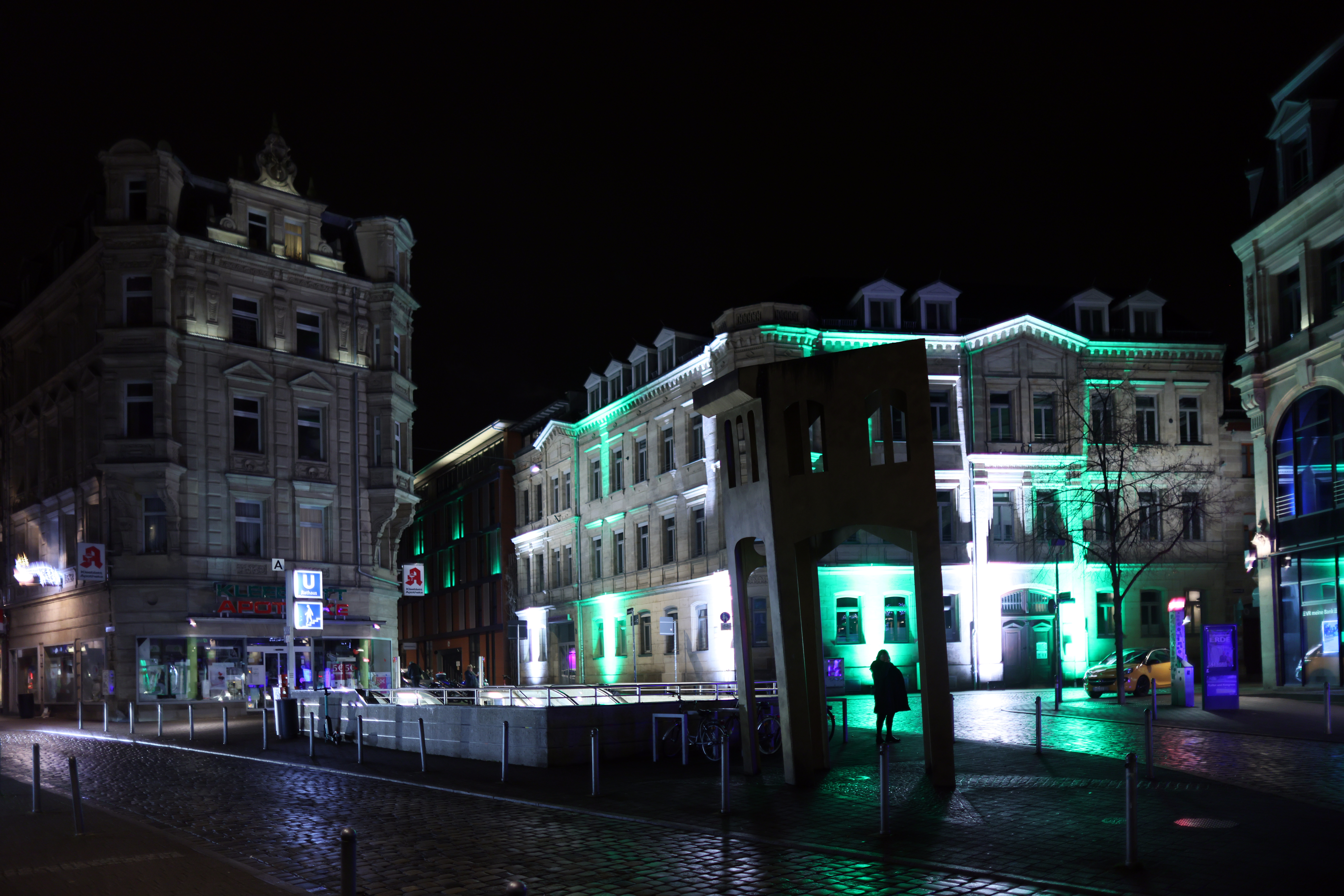 | Beschreibung | Kohlenmarkt/Technisches Rathaus anlässlich der Veranstaltung Weiß-grünes Fürth, Jan. 2022 | ||