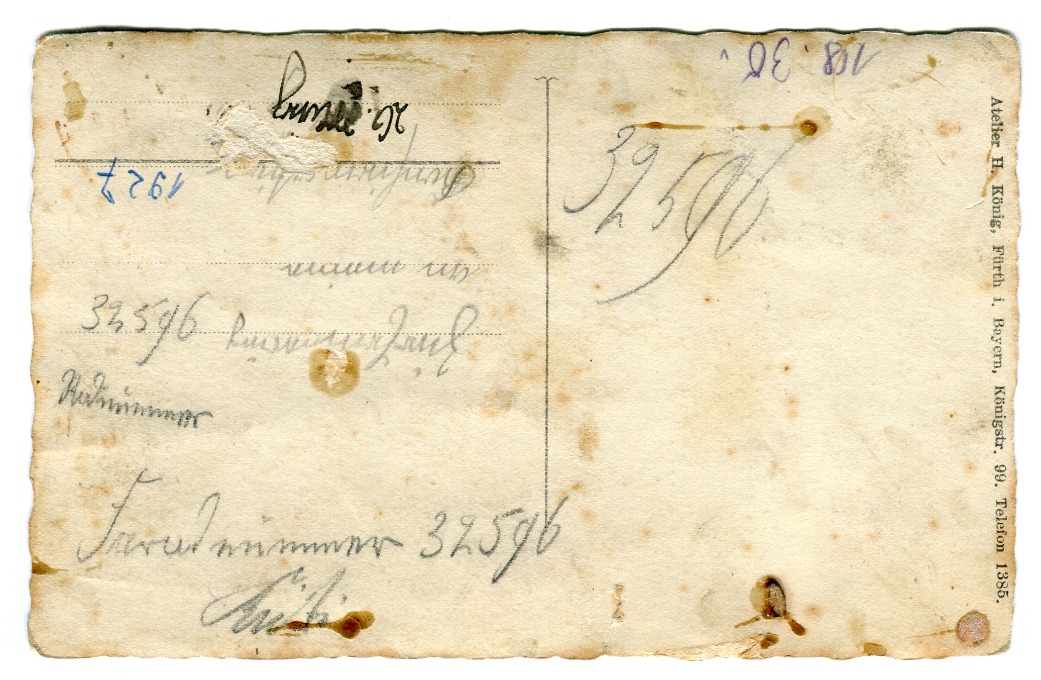 | Beschreibung | Rückseite mit Fotografen Daten H. König zur Aufnahme Konfirmation 1927 | ||