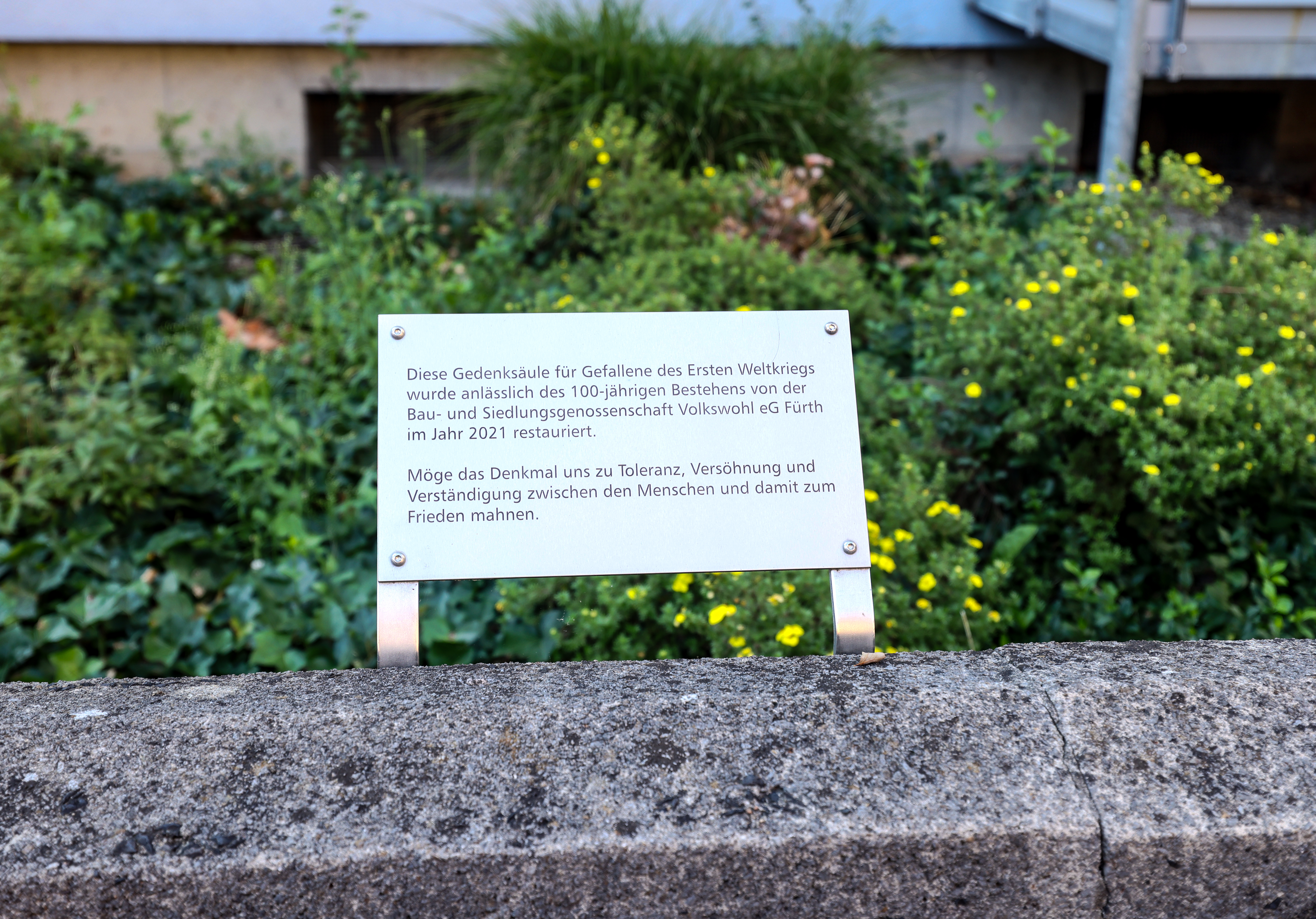 BeschreibungGedenktafel an dem Kriegerdenkmal in der Kaiserstraße, Aug. 2023