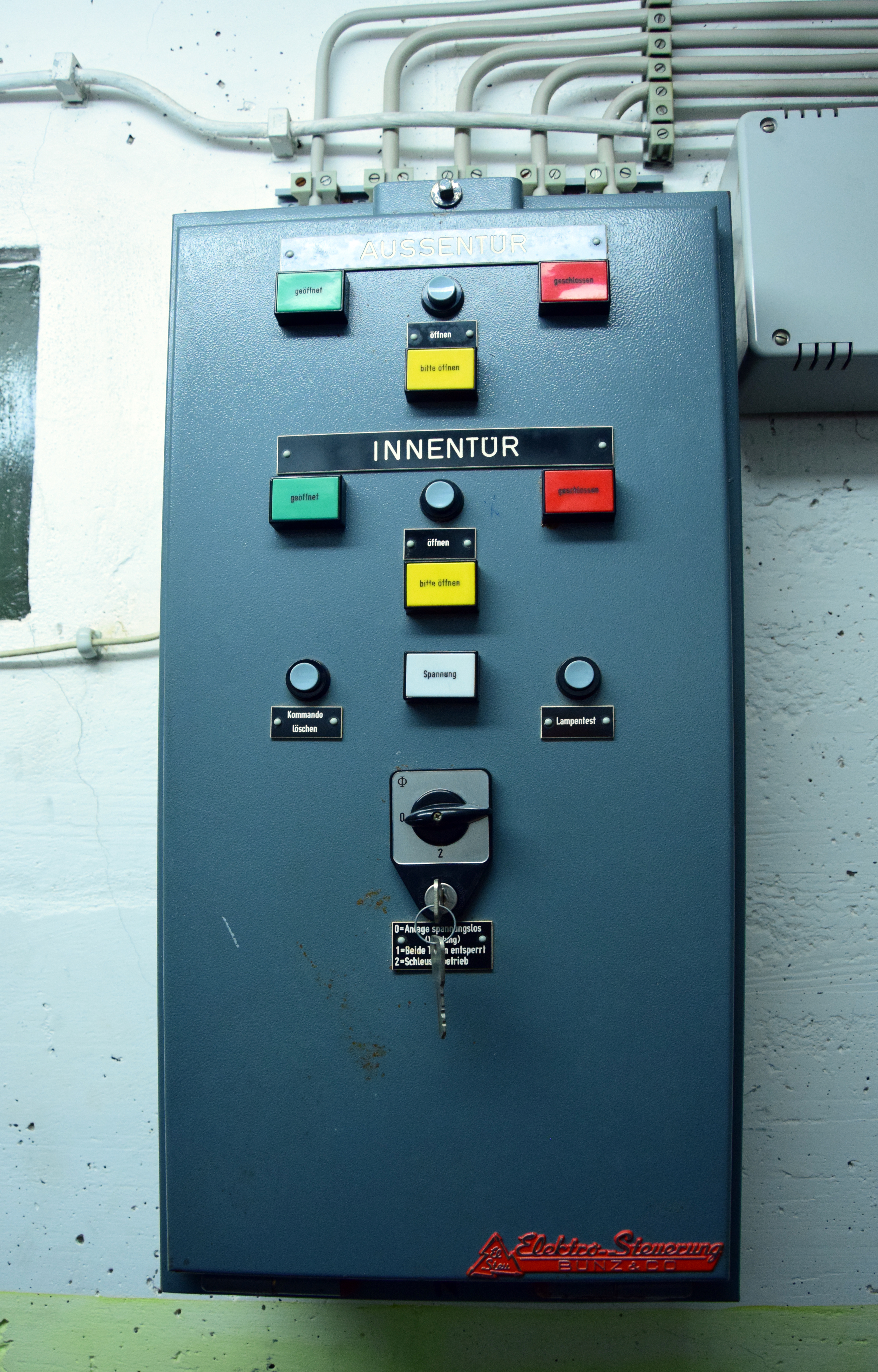 | Beschreibung | Kontrollanlage zur Steuerung der Schleuse im Kronacher Bunker, August 2019 | ||