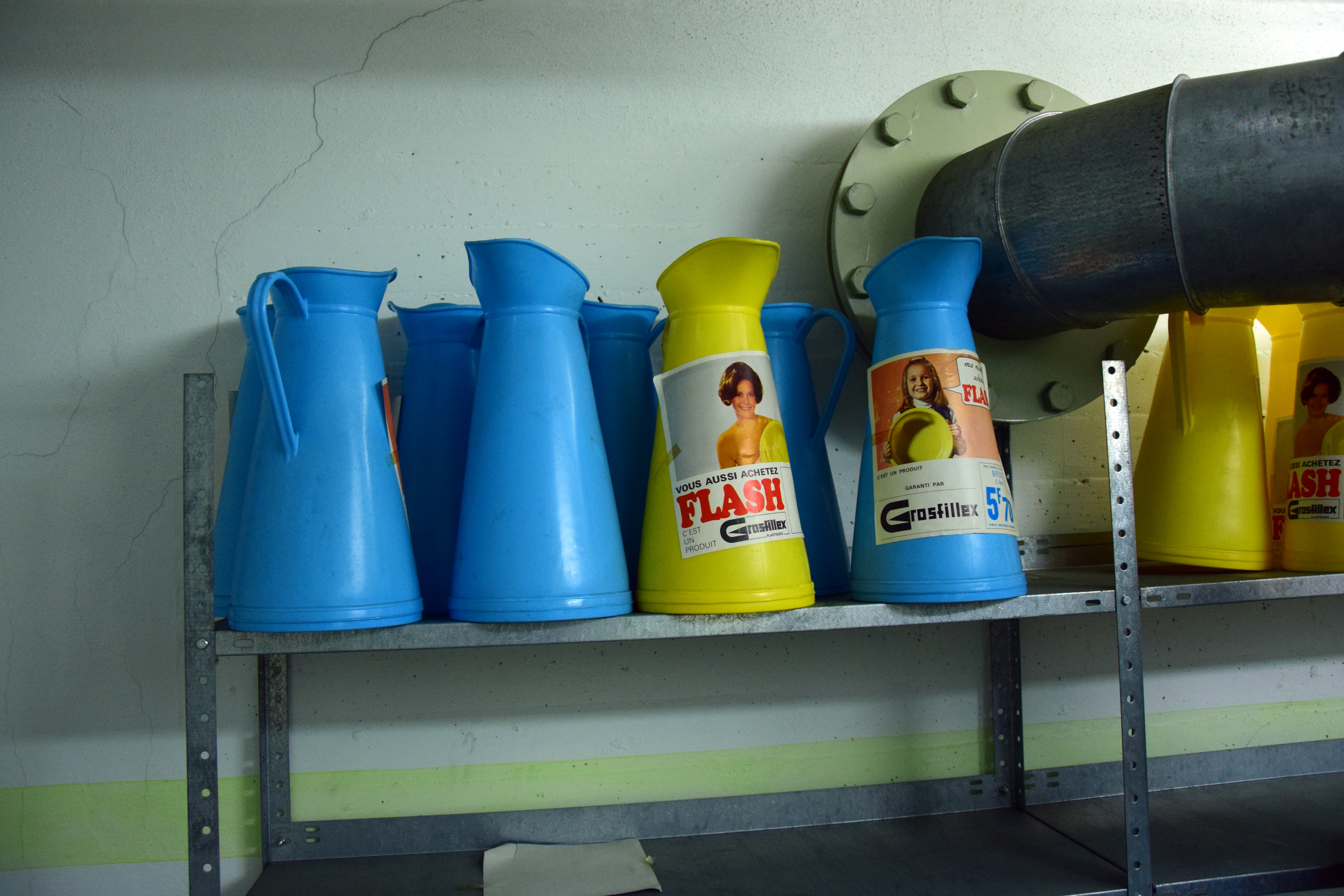 | Beschreibung | Tee- und Wasserkannen im Kronacher Bunker, August 2019 | ||