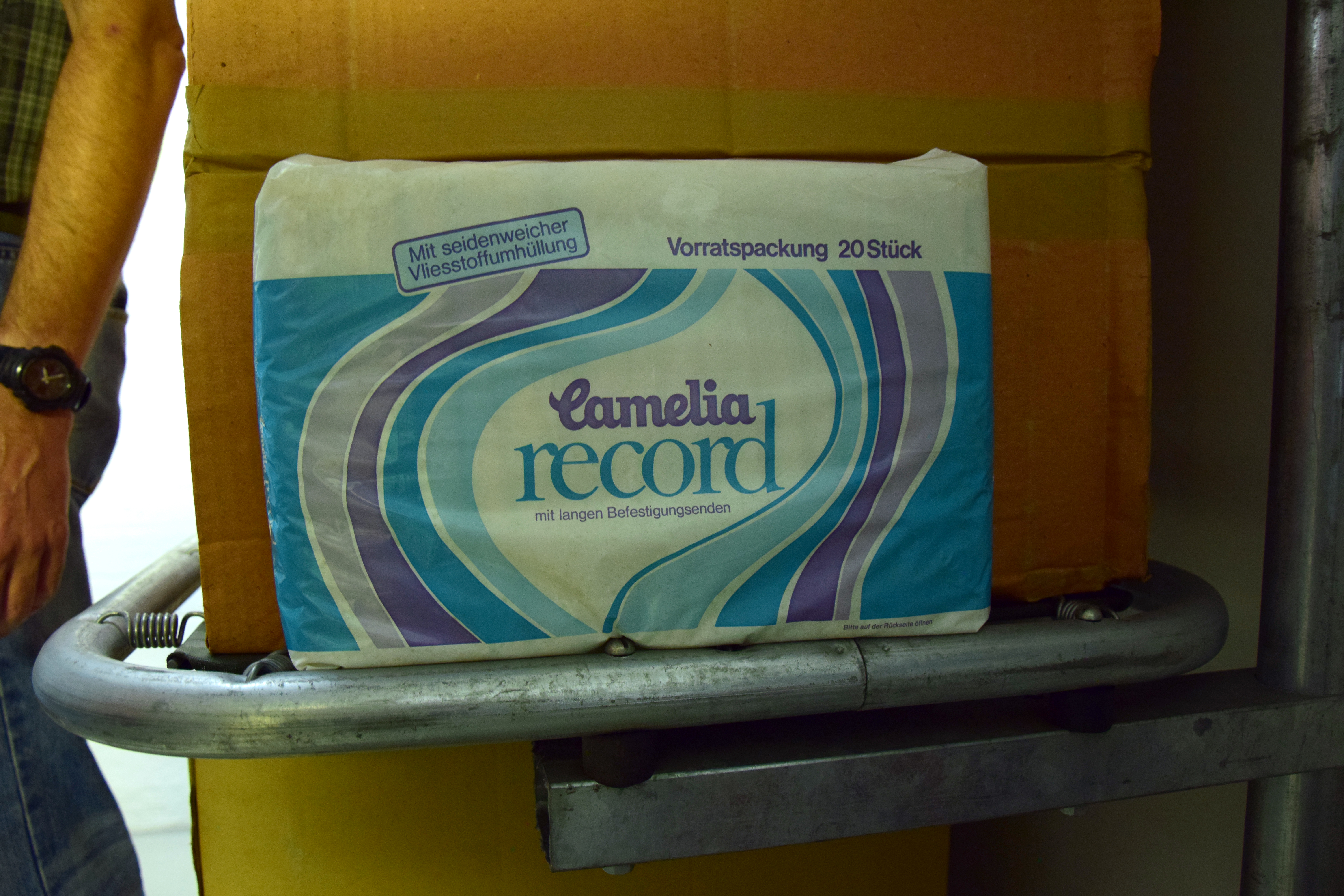 | Beschreibung | Camelia-Damenbinden im Kronacher Bunker, August 2019 | ||