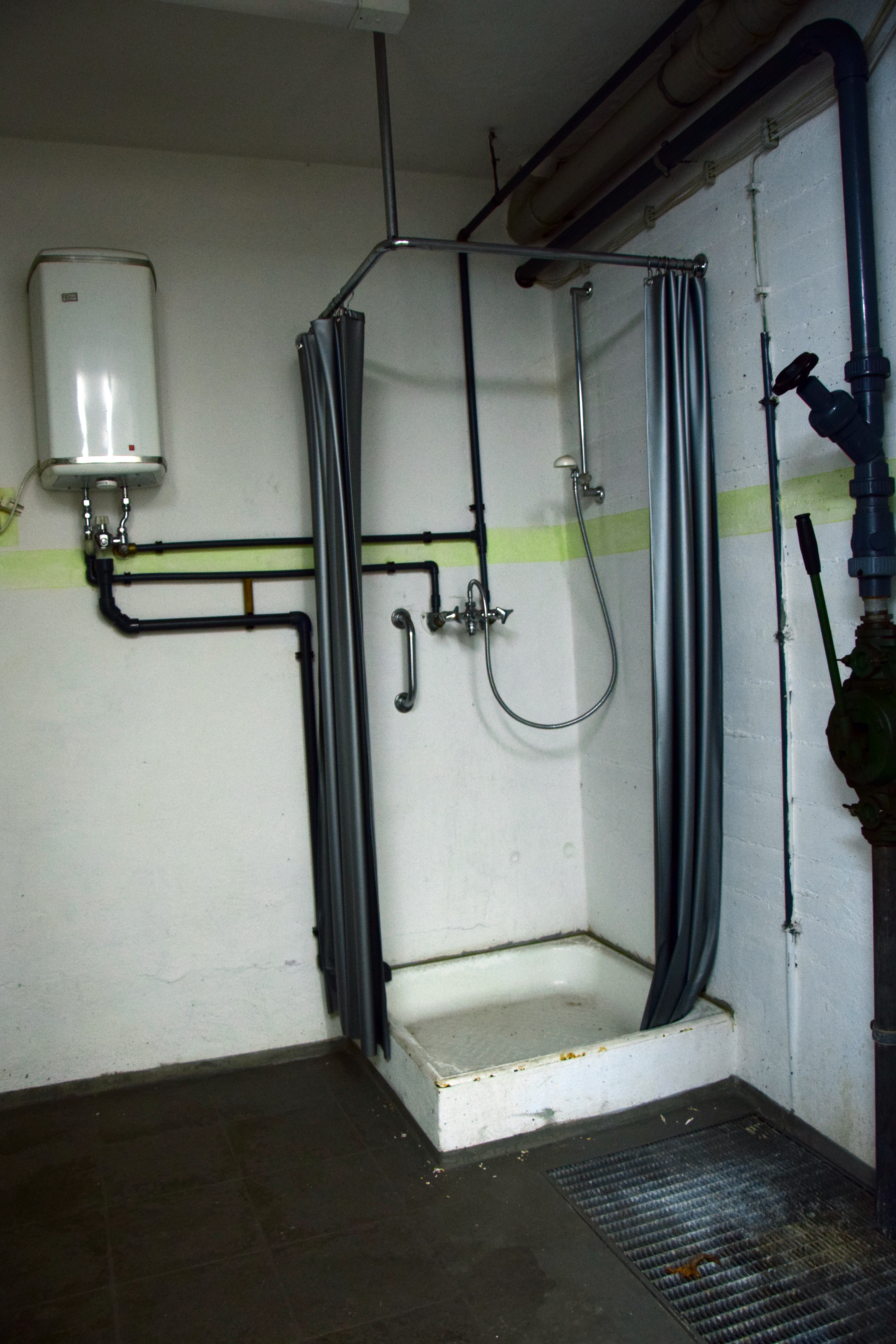 | Beschreibung | Dusche im Lazarett im Kronacher Bunker, August 2019 | ||