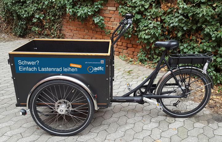BeschreibungLastenrad "Gerti" vor dem Ausleihstandort Velomondial, 2019